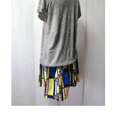 トップスをインしたコーディネートも素敵。幾何学柄です。