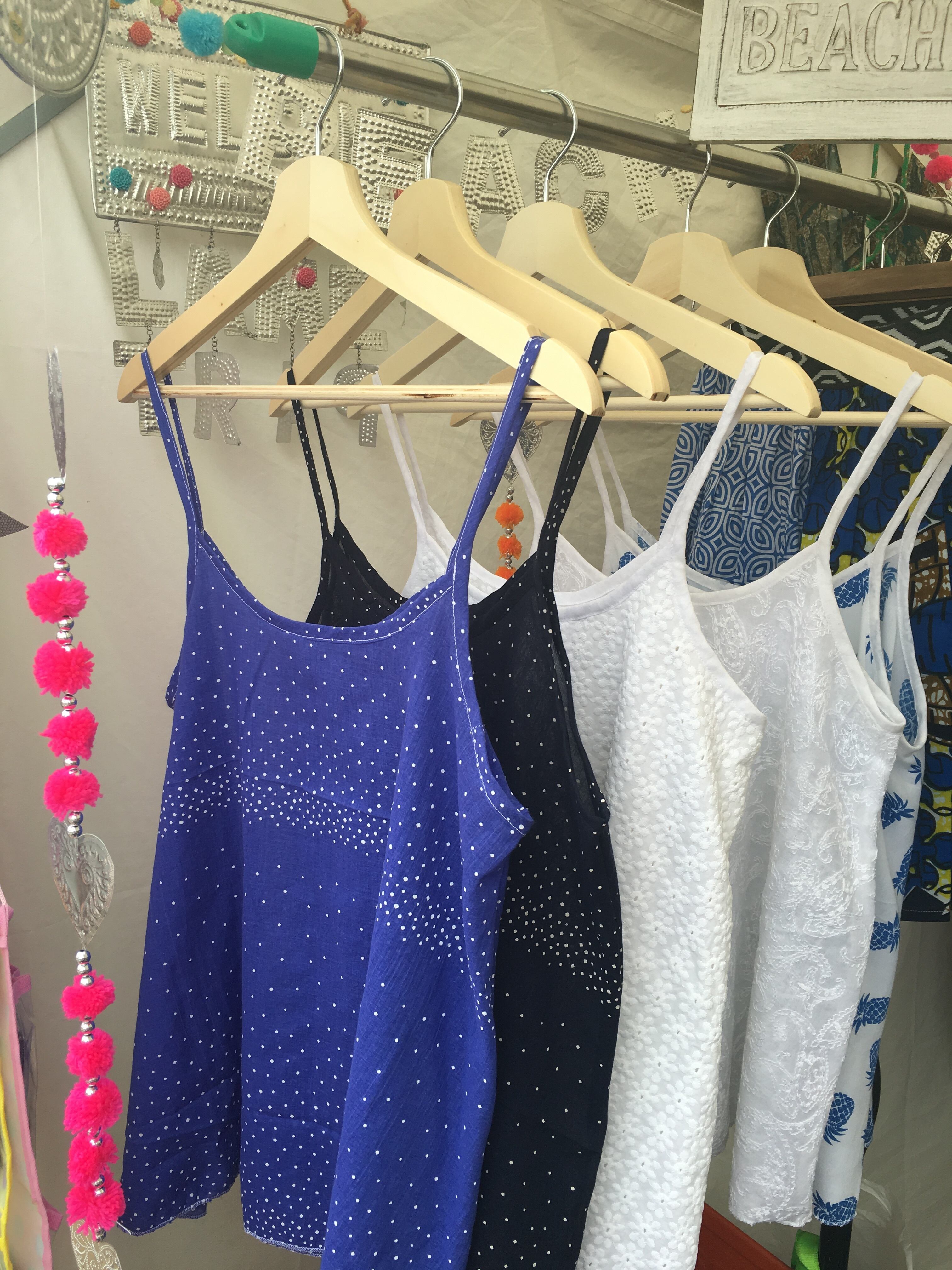 白のコットンに白のペイズリー柄刺繍のキャミソール。