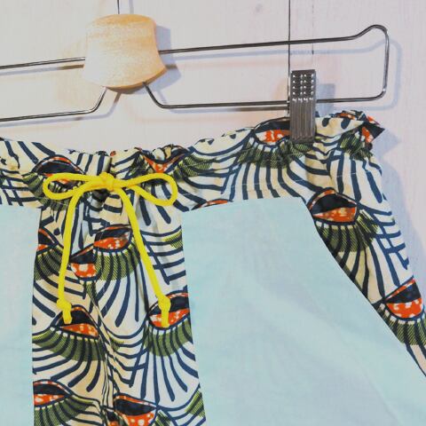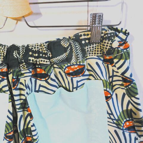 パーニュという西アフリカで使われているカラフルなプリント生地で作ったショートパンツ。