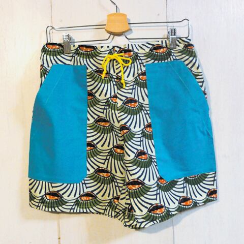 パーニュという西アフリカで使われているカラフルなプリント生地で作ったショートパンツ。