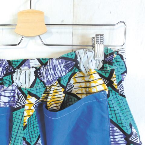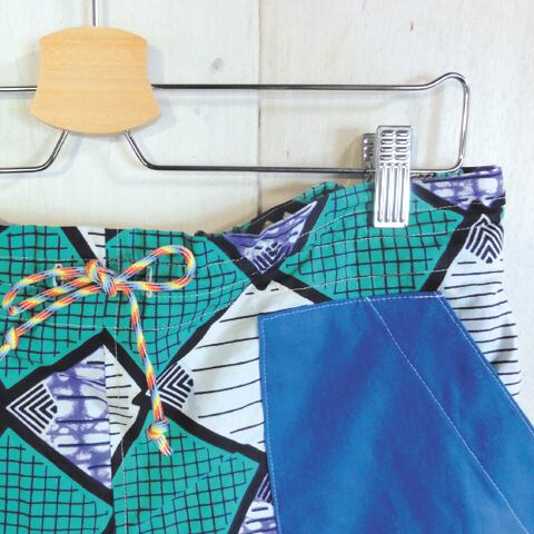 パーニュという西アフリカで使われているカラフルなプリント生地で作ったショートパンツ。