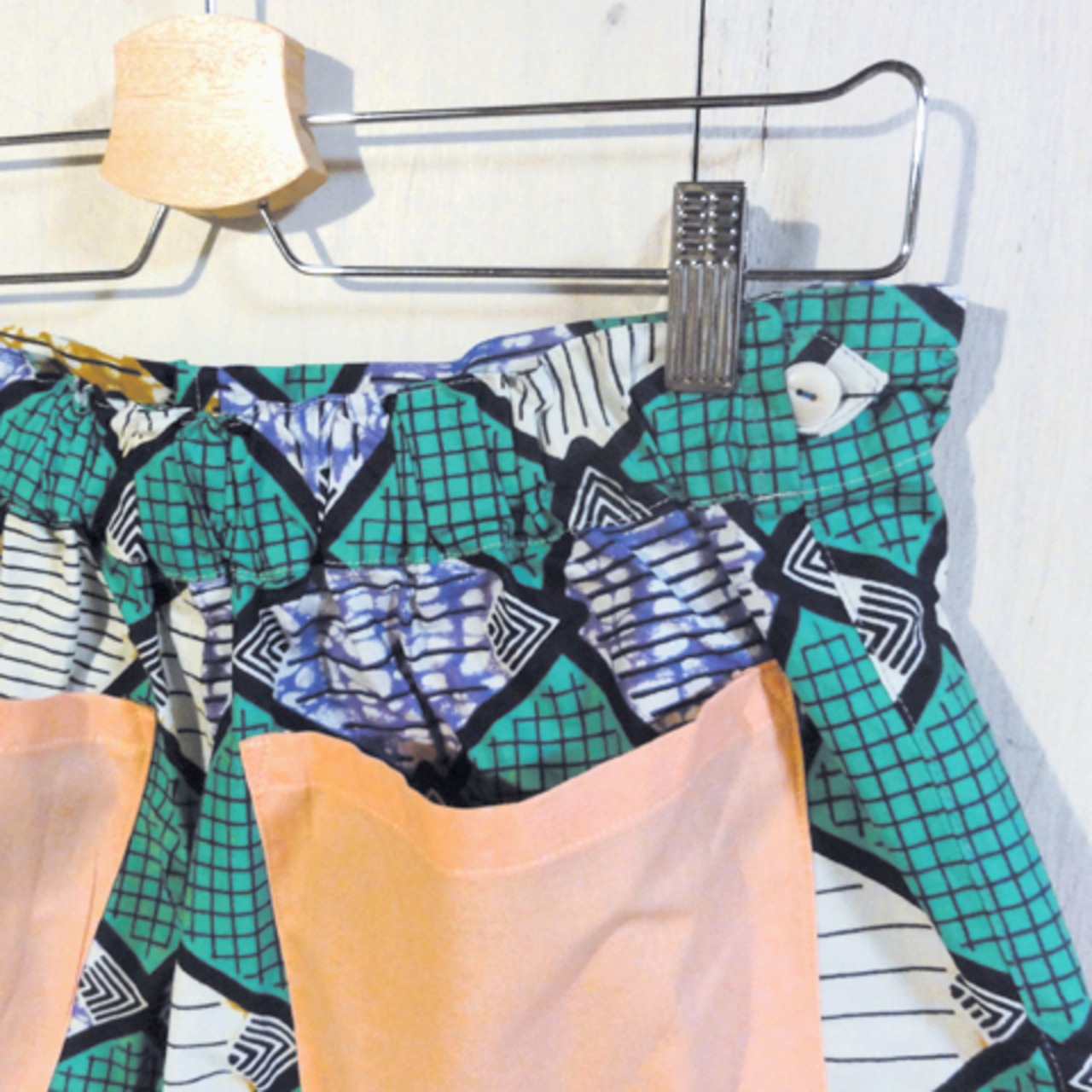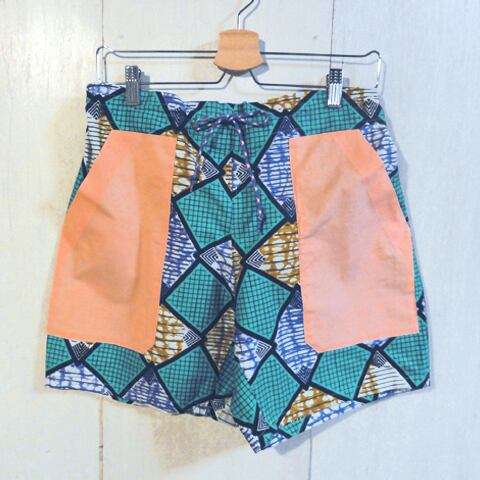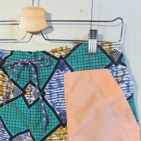 パーニュという西アフリカで使われているカラフルなプリント生地で作ったショートパンツ。
