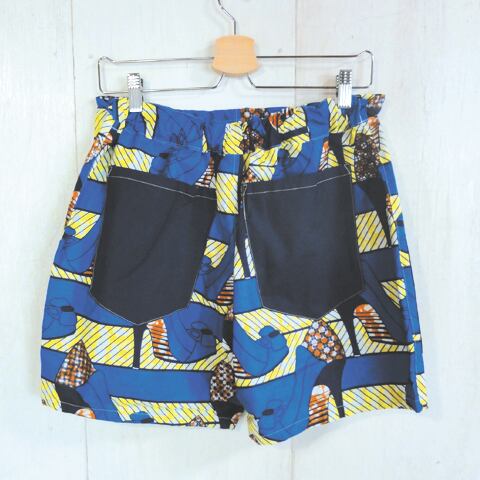 パーニュという西アフリカで使われているカラフルなプリント生地で作ったショートパンツ。