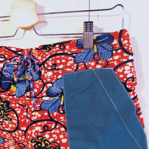パーニュという西アフリカで使われているカラフルなプリント生地で作ったショートパンツ。