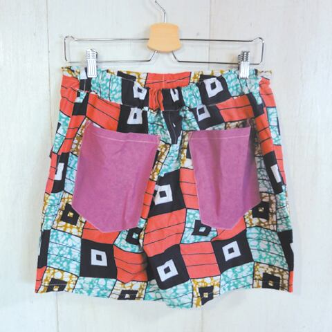 パーニュという西アフリカで使われているカラフルなプリント生地で作ったショートパンツ。