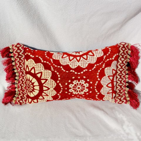 スリムな形で存在感ありのクッション。タッセルでよりアラビックな雰囲気に。