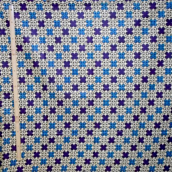 ワックスプリントという方法で蝋や樹脂などを用いて染色をしている為