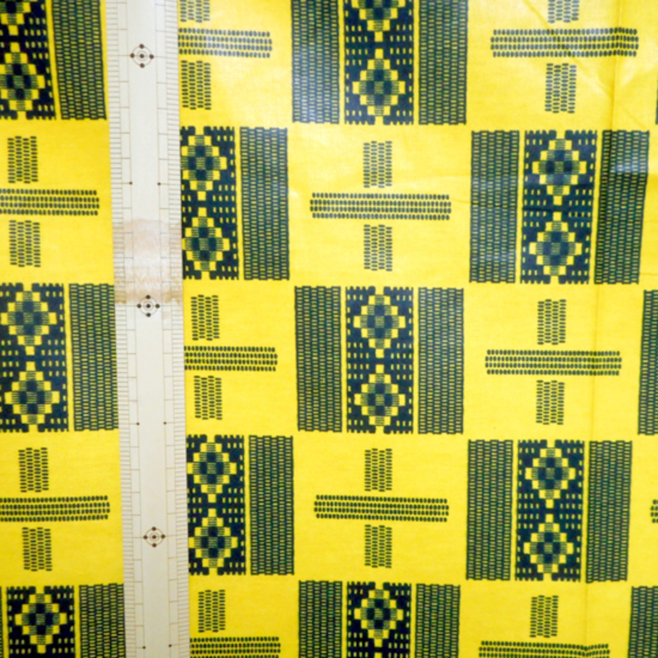 ワックスプリントという方法で蝋や樹脂などを用いて染色をしている為