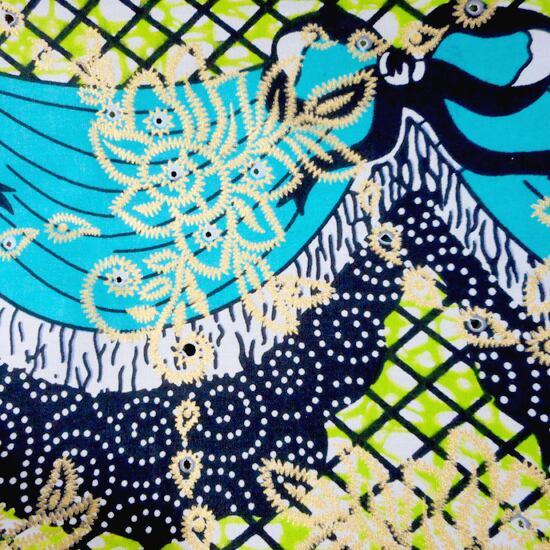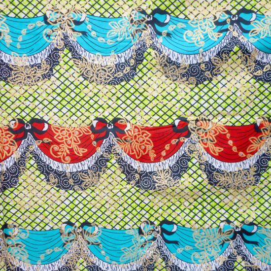 ワックスプリントのあとに上からシャイニーなプリントがされております。