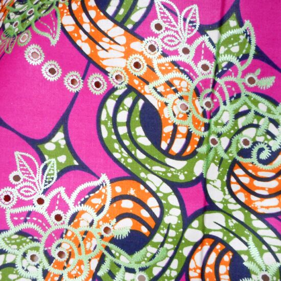 ワックスプリントのあとに上からシャイニーなプリントがされております。