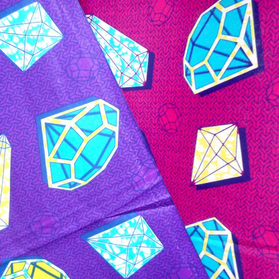 ワックスプリントという方法で蝋や樹脂などを用いて染色をしている為