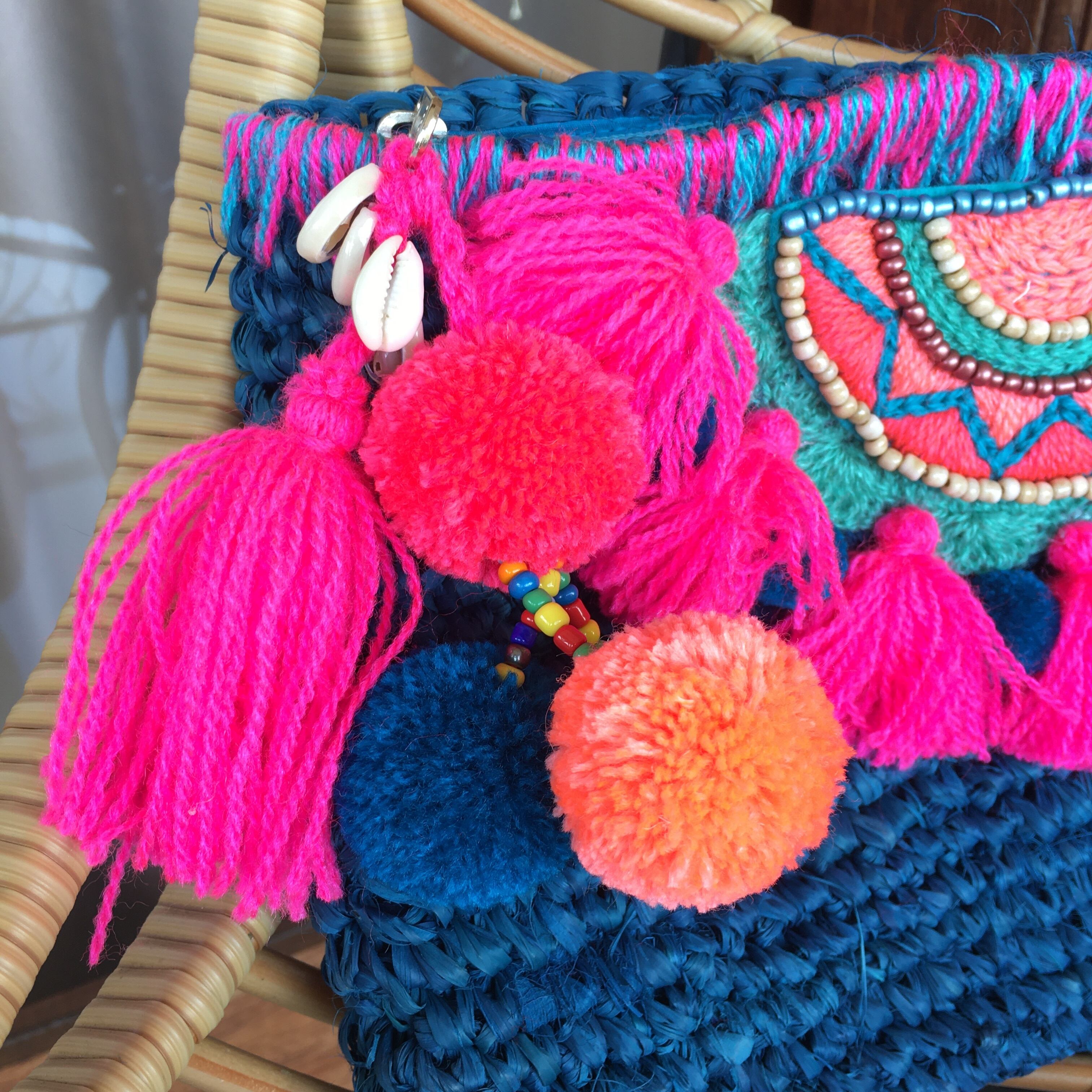 material: ラフィア,コットン,ウール,ビーズ,貝殻