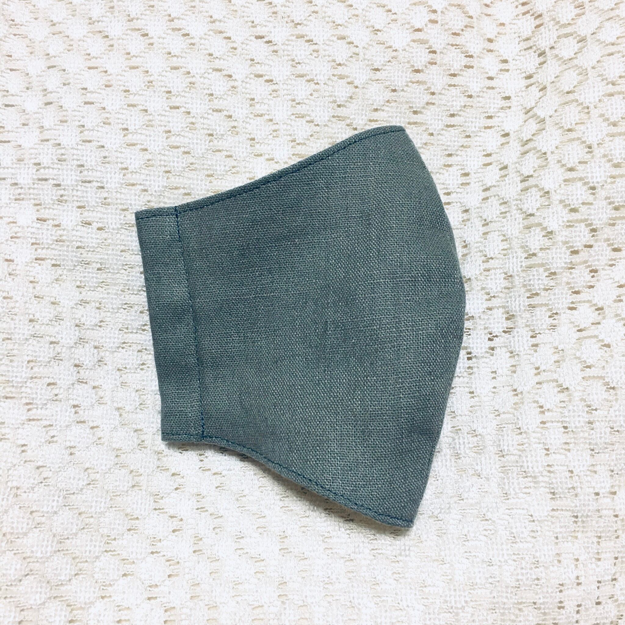 表面はスモーキーグリーンの綿麻、裏面はオフホワイトのダブルガーゼを使用しています。