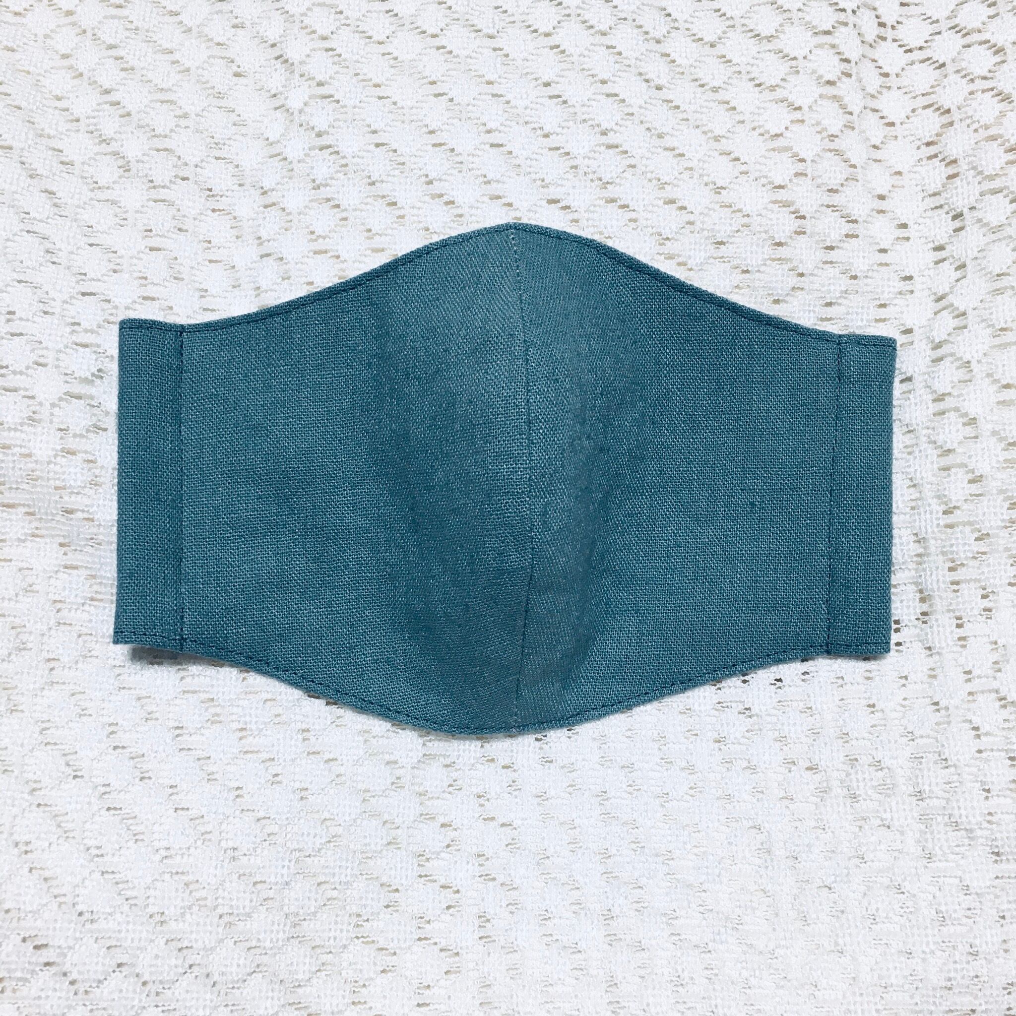 表面はピーコックブルーの綿麻、裏面はオフホワイトのダブルガーゼを使用しています。