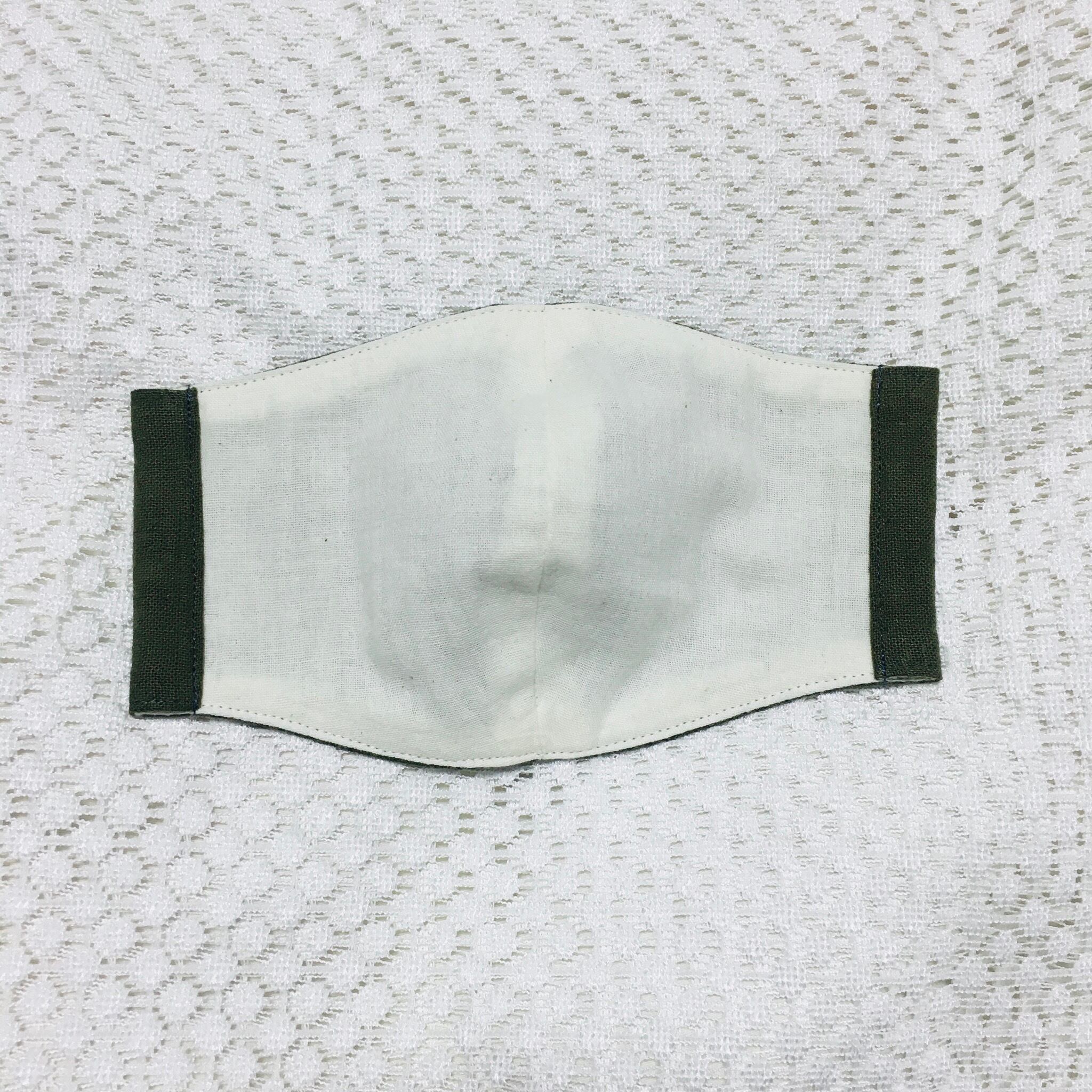 表面はオリーブグリーンの綿麻、裏面はオフホワイトのダブルガーゼを使用しています。