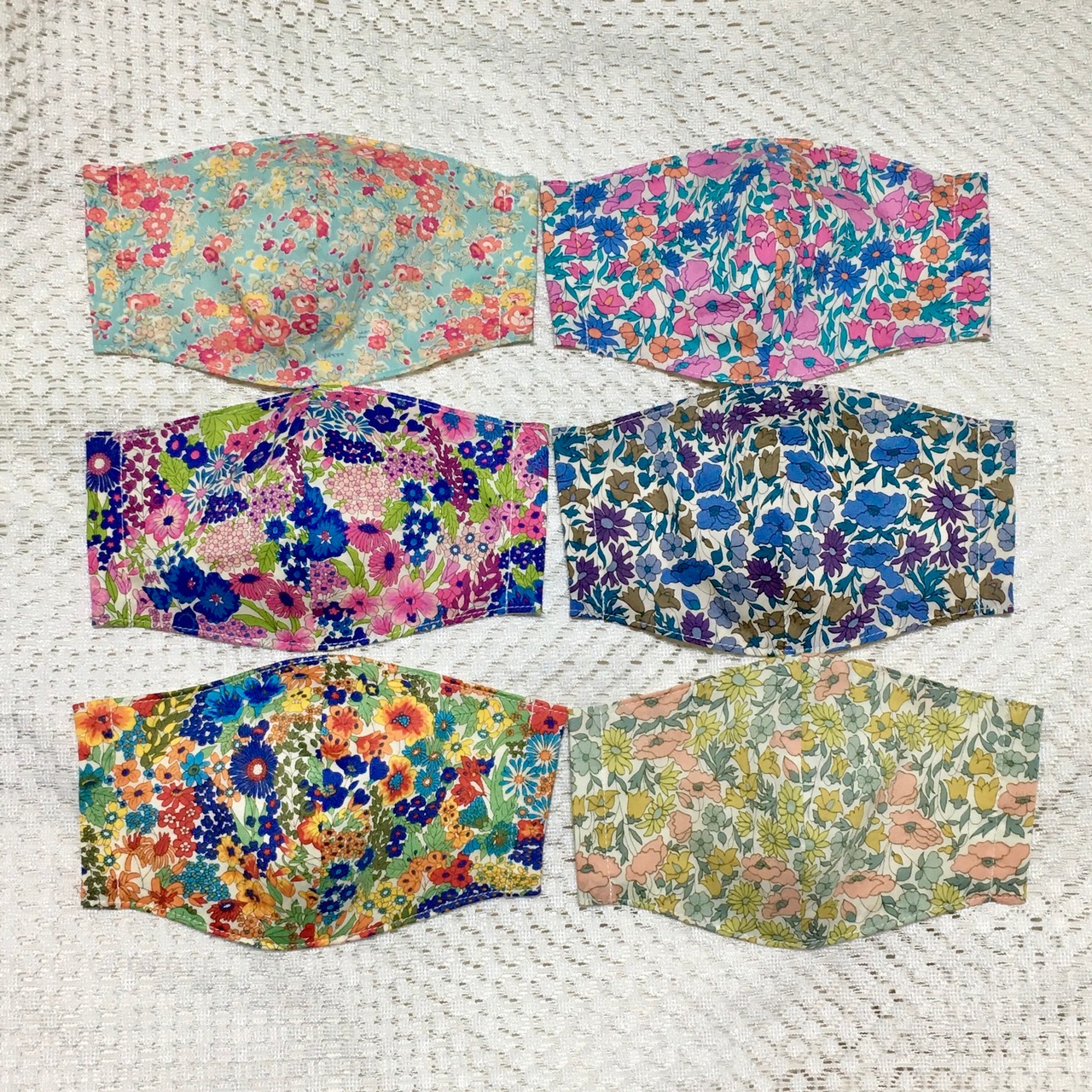 表面は綿でリバティプリントを、裏面はオフホワイトのダブルガーゼを使用しています。
