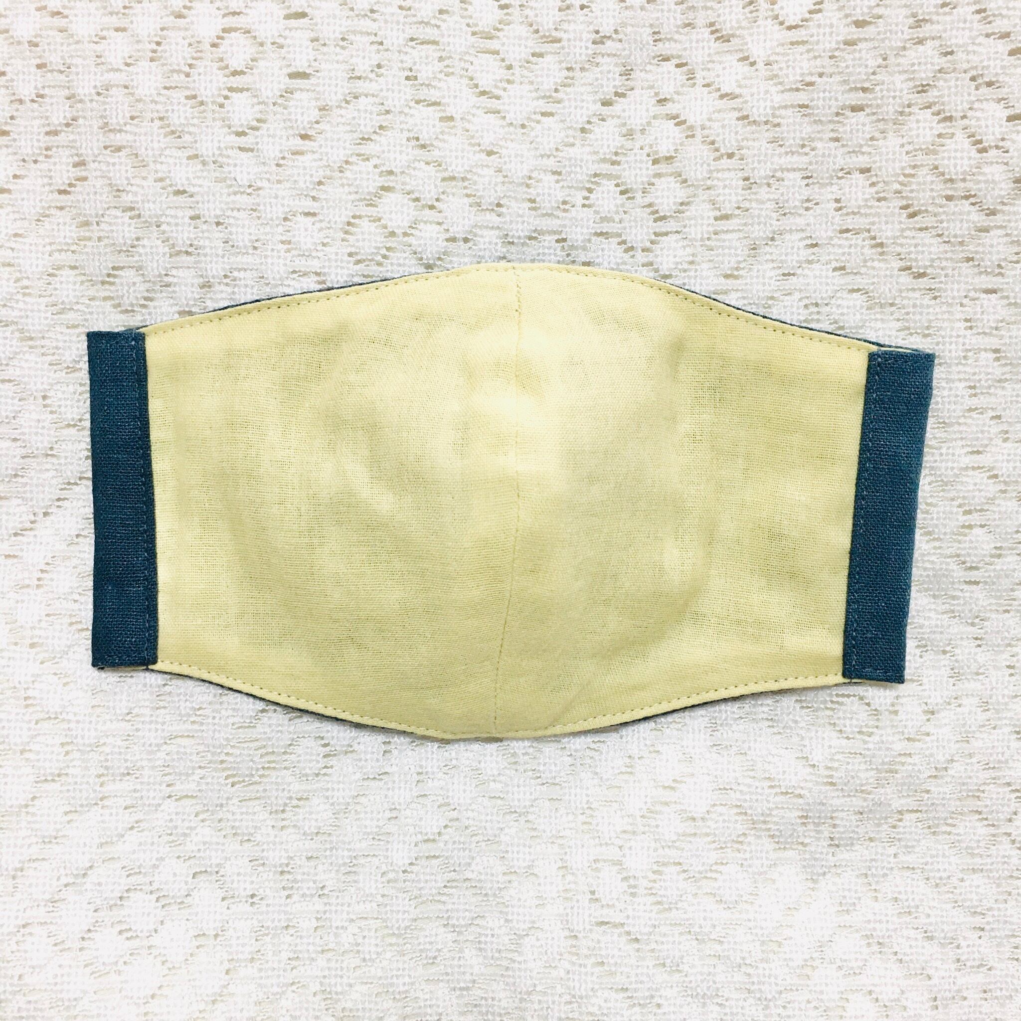 表面はブルーグリーンの綿麻、裏面はスモーキーイエローのダブルガーゼを使用しています。