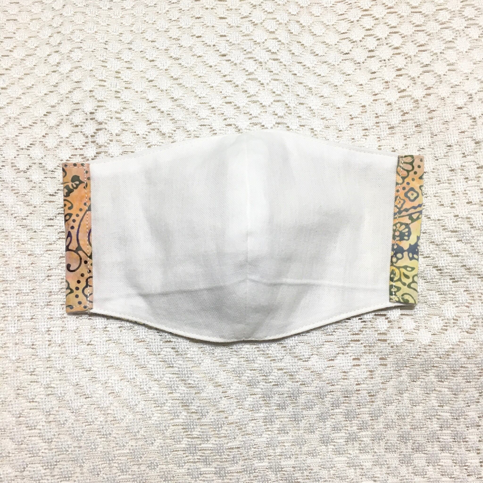 表面は綿でインドネシアのバティックを、裏面はホワイトのサラシを2枚重ねて使用しています。