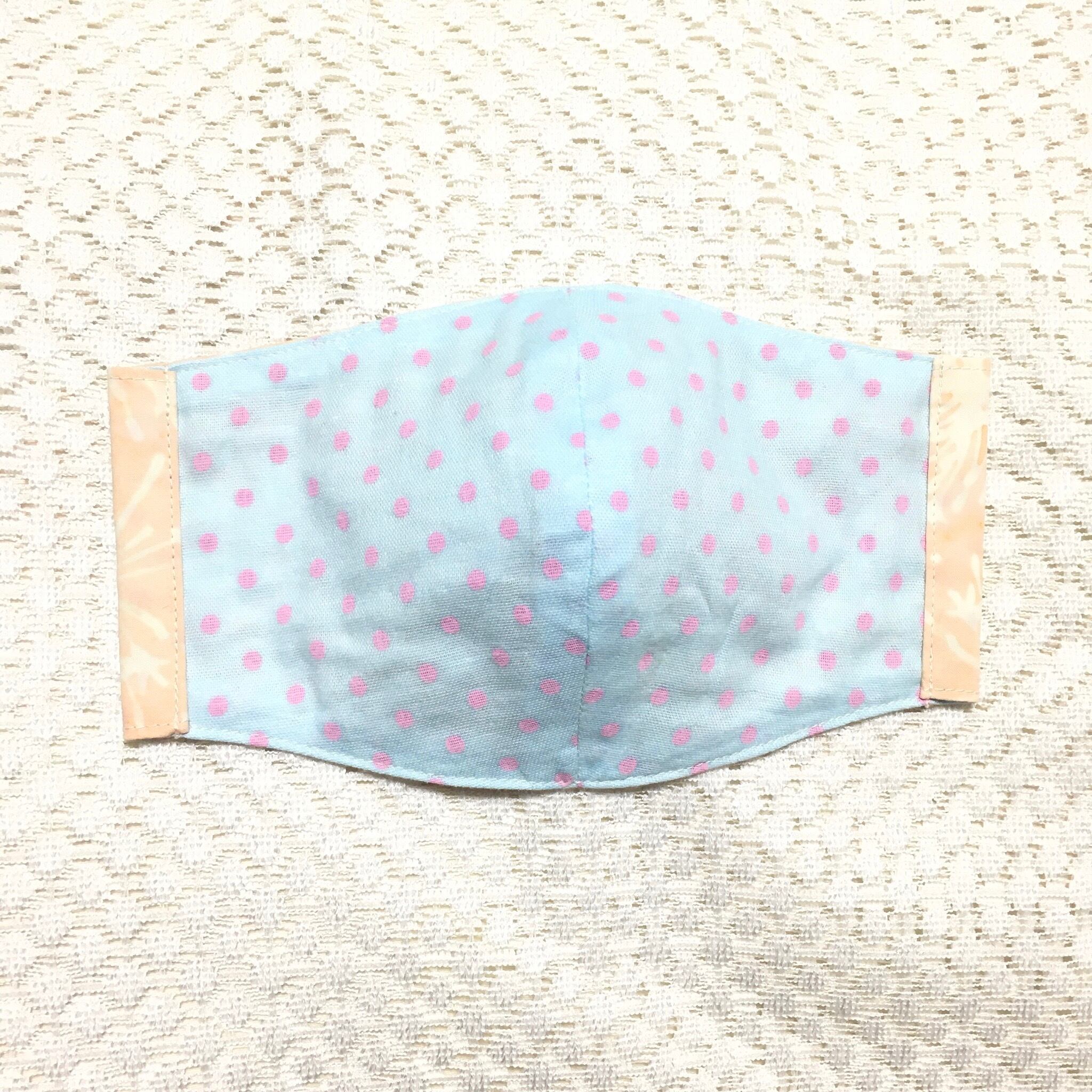 表面は綿でインドネシアのバティックを、裏面はピンク×ライトブルーのドットダブルガーゼを使用しています。