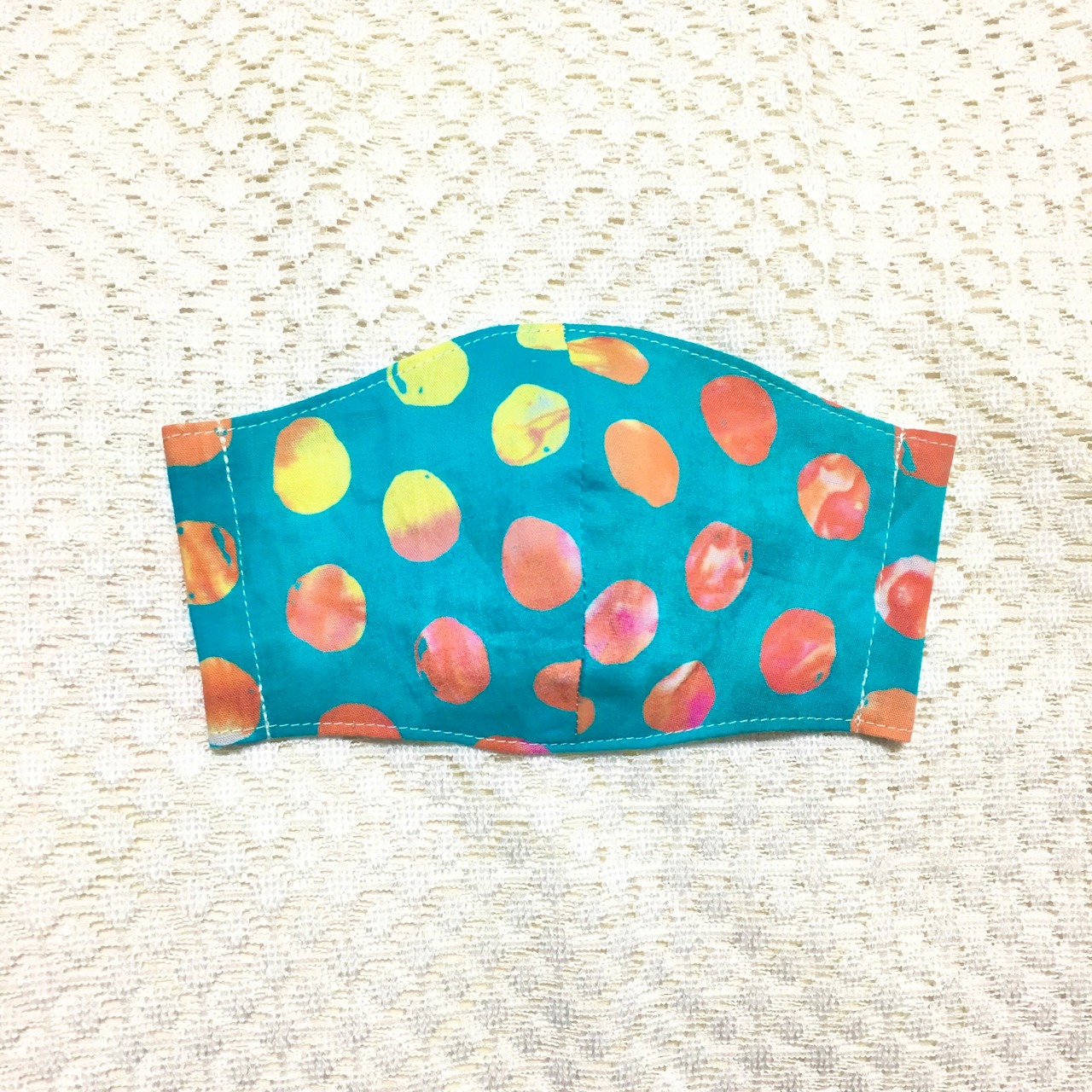 表面は綿でインドネシアのバティックを、裏面はピンク×ライトブルーのドットダブルガーゼを使用しています。