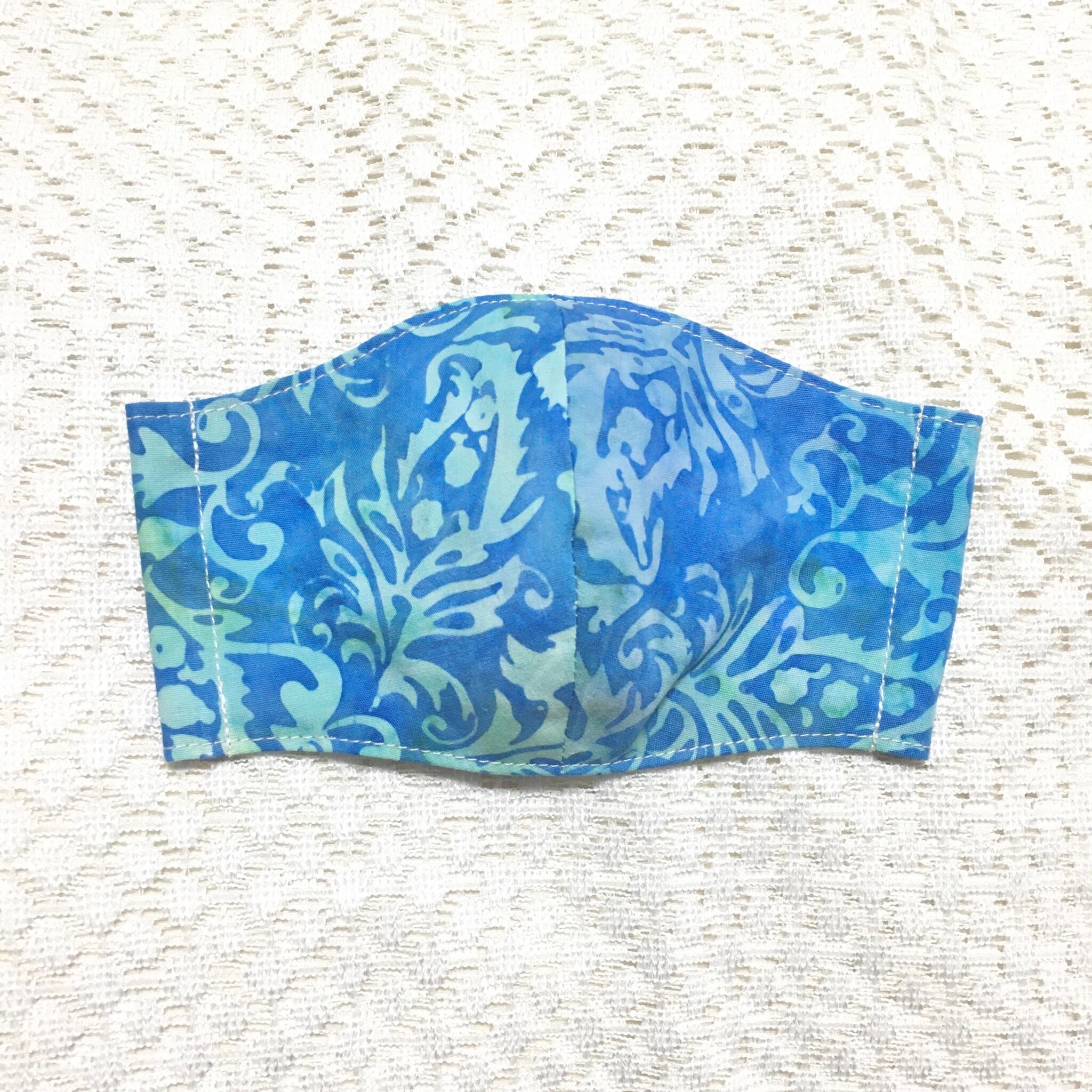 表面は綿でインドネシアのバティックを、裏面はピンク×ライトブルーのドットダブルガーゼを使用しています。