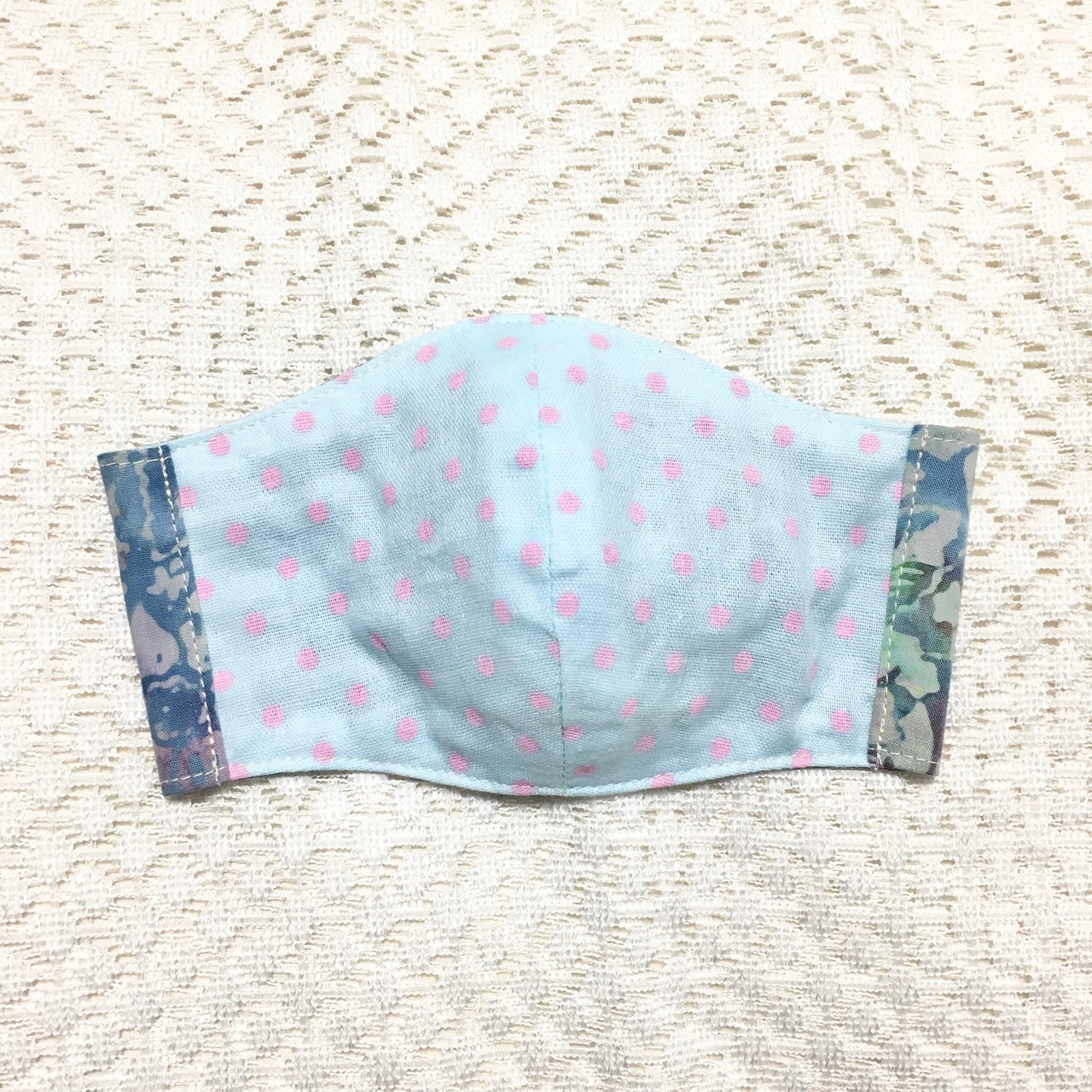 表面は綿でインドネシアのバティックを、裏面はピンク×ライトブルーのドットダブルガーゼを使用しています。