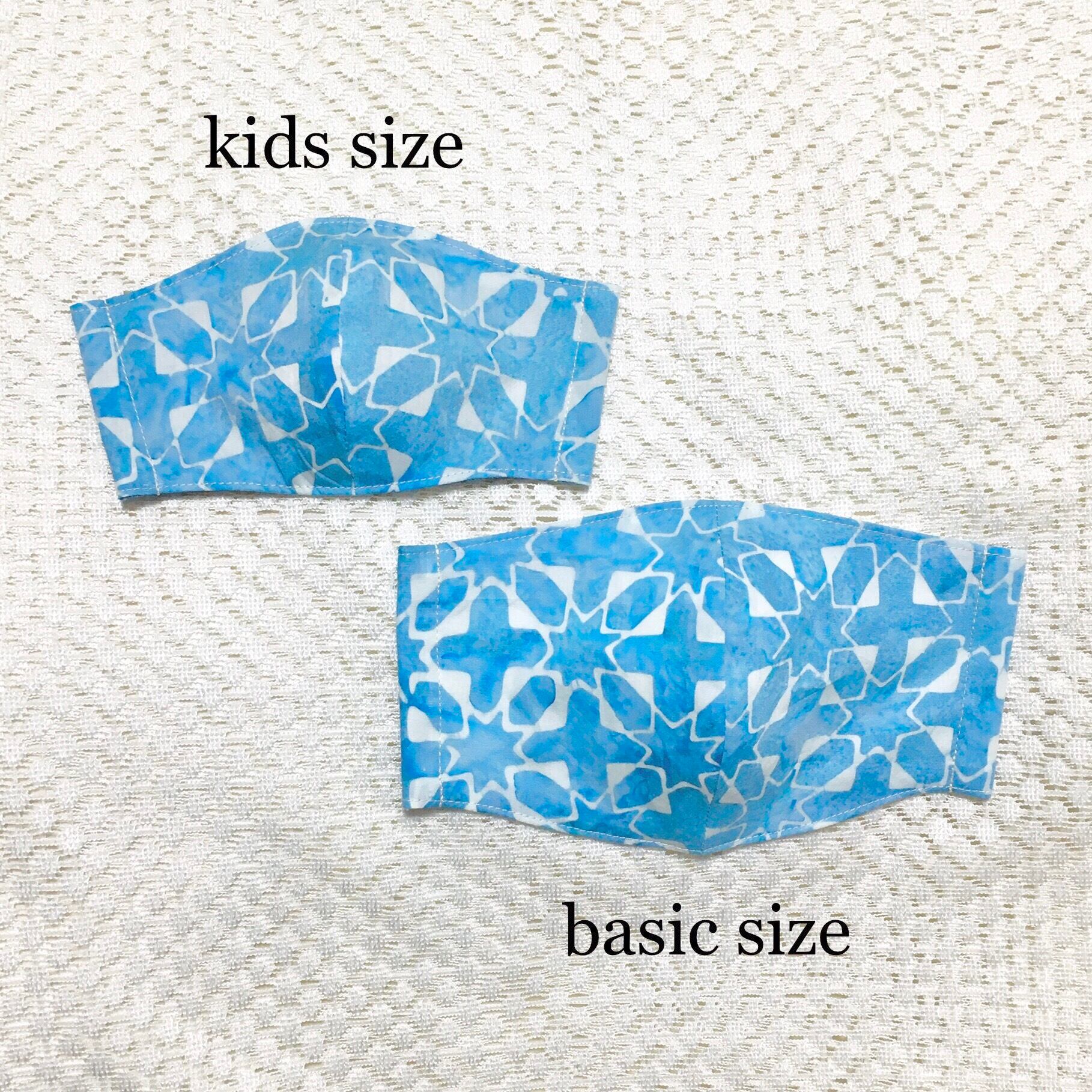 表面は綿でインドネシアのバティックを、裏面はピンク×ライトブルーのドットダブルガーゼを使用しています。