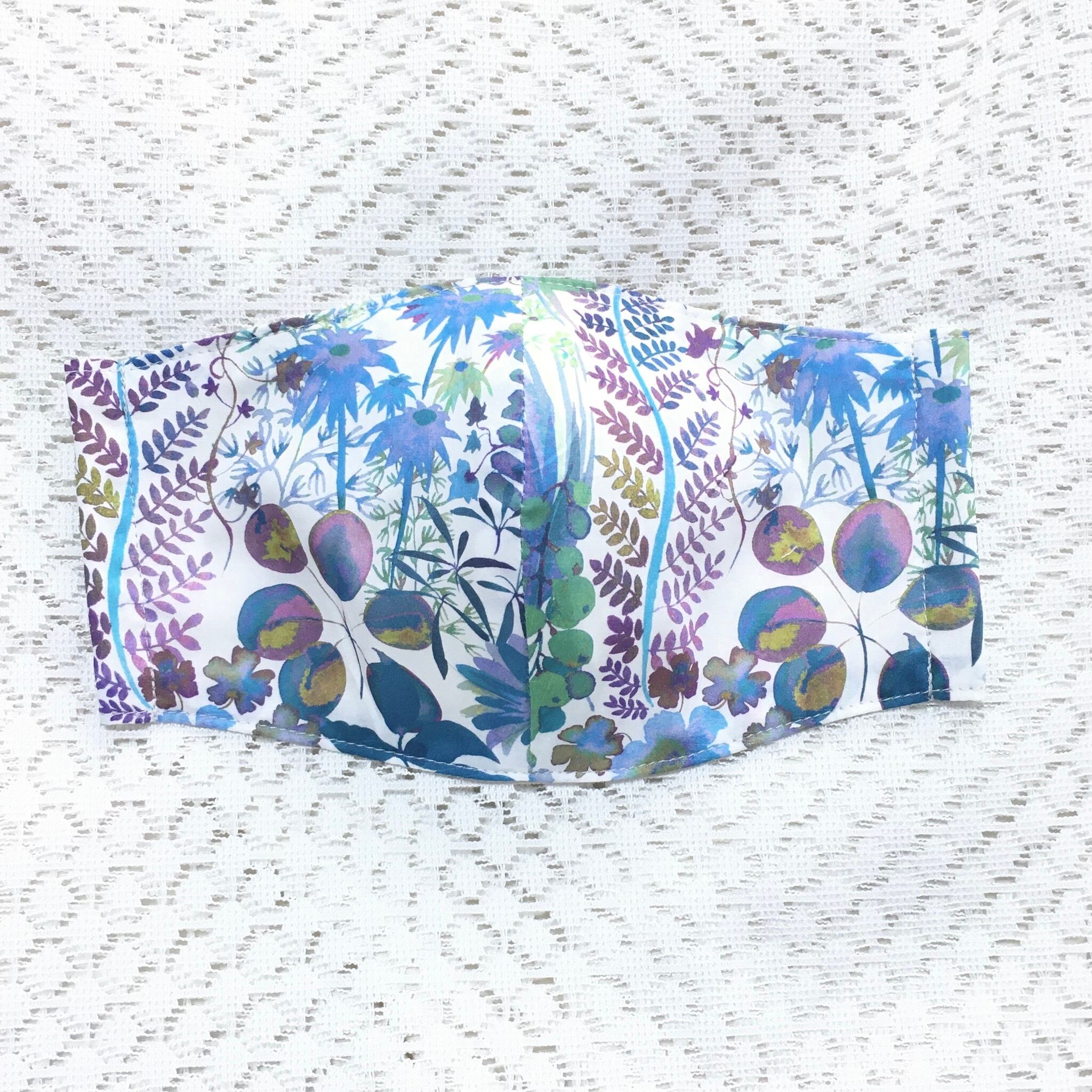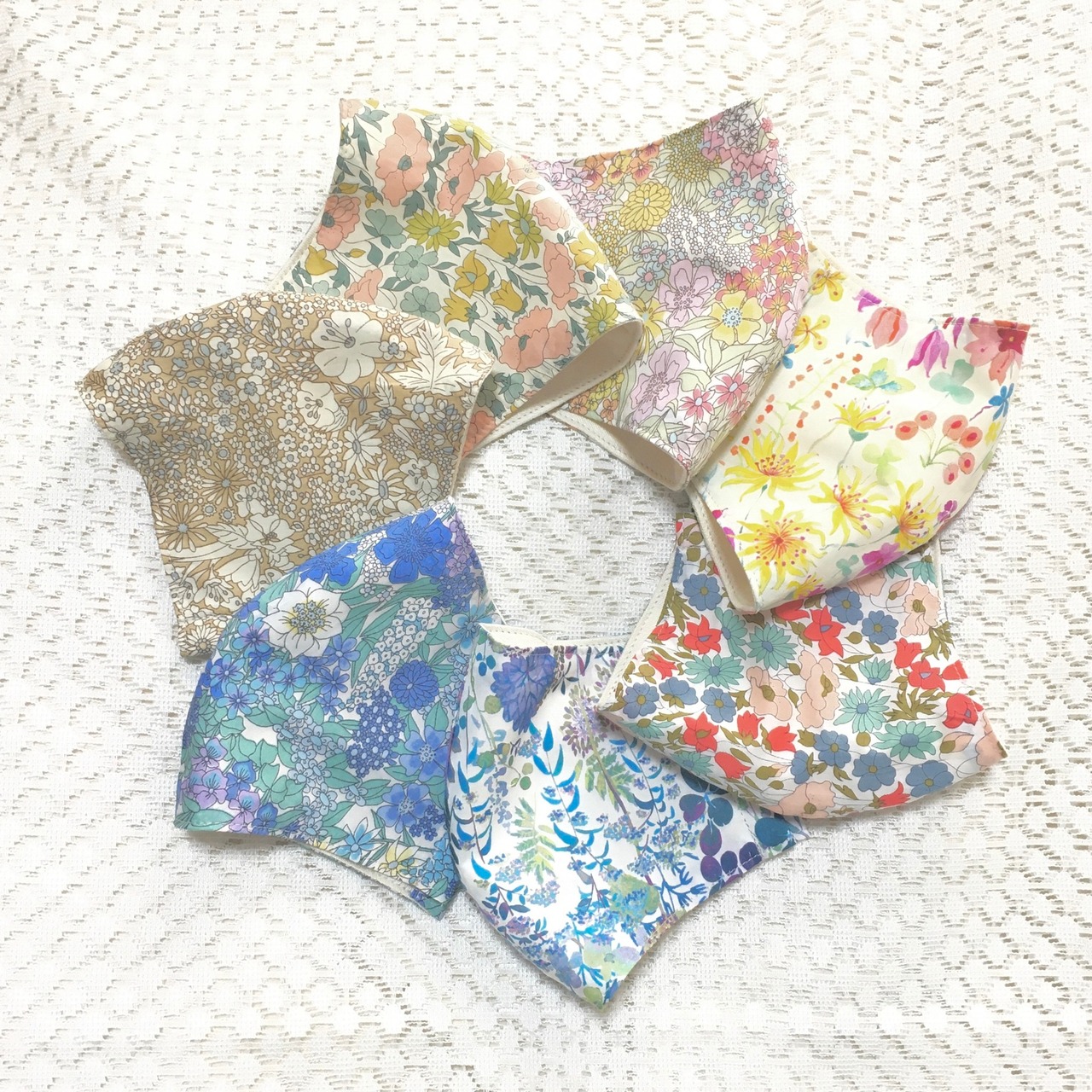 表面は綿でリバティプリントを、裏面はオフホワイトのオーガニックコットン100%を使用しています。