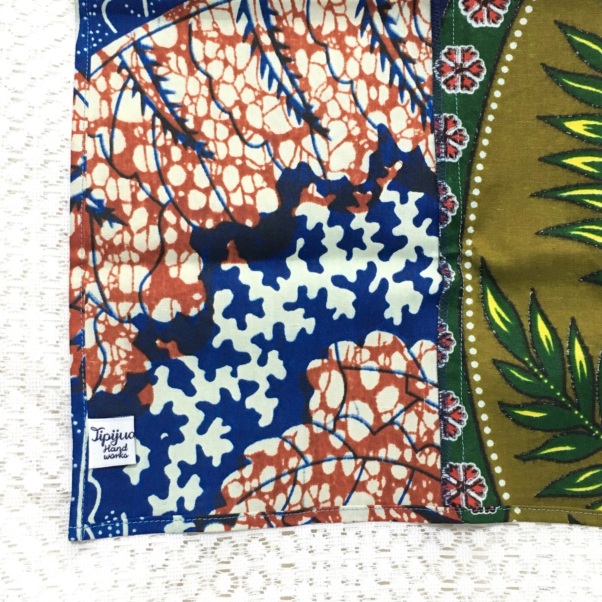 見せる柄を選んで頭に巻いたり、半分に折ってランチョンマットにしたり。お好みでお使いください。