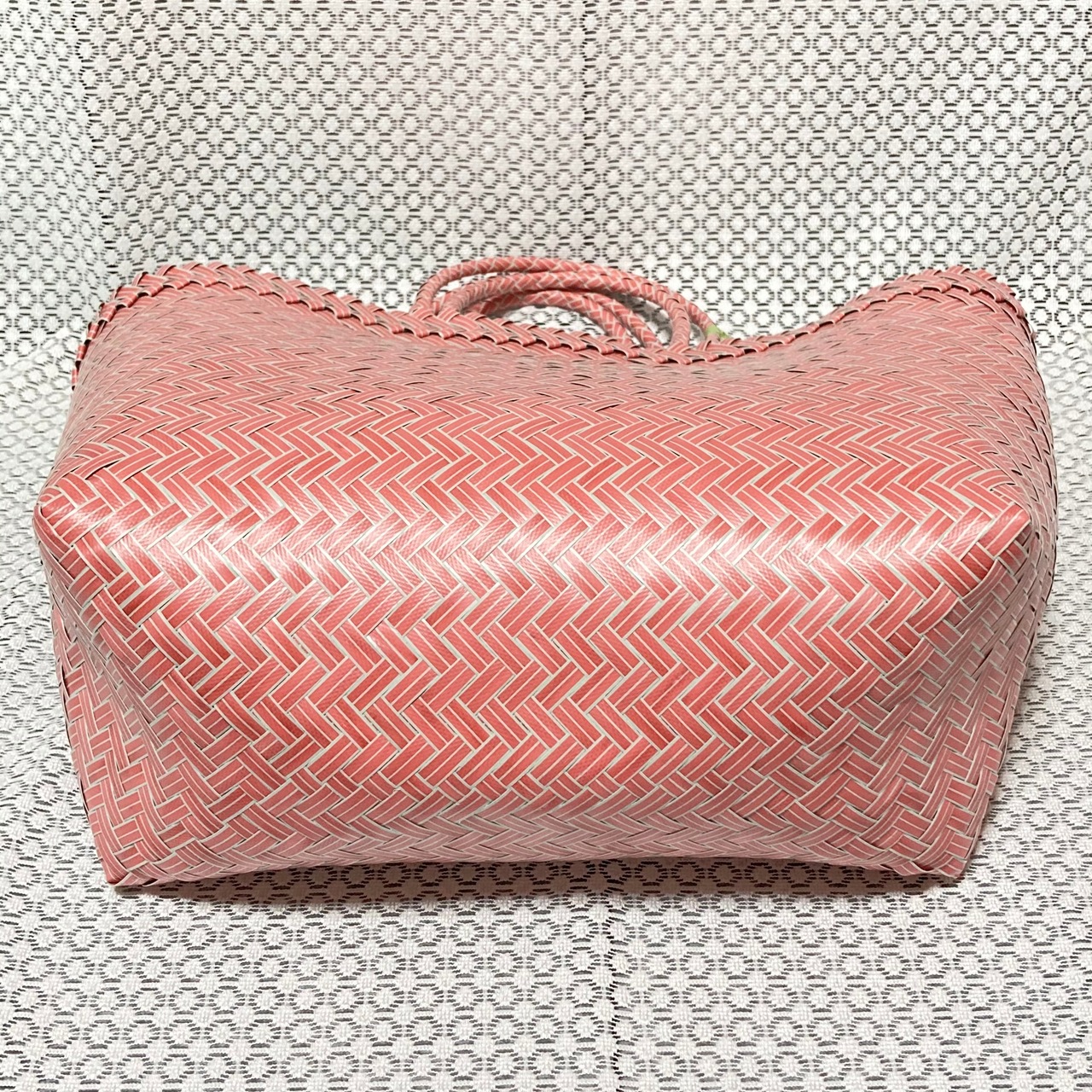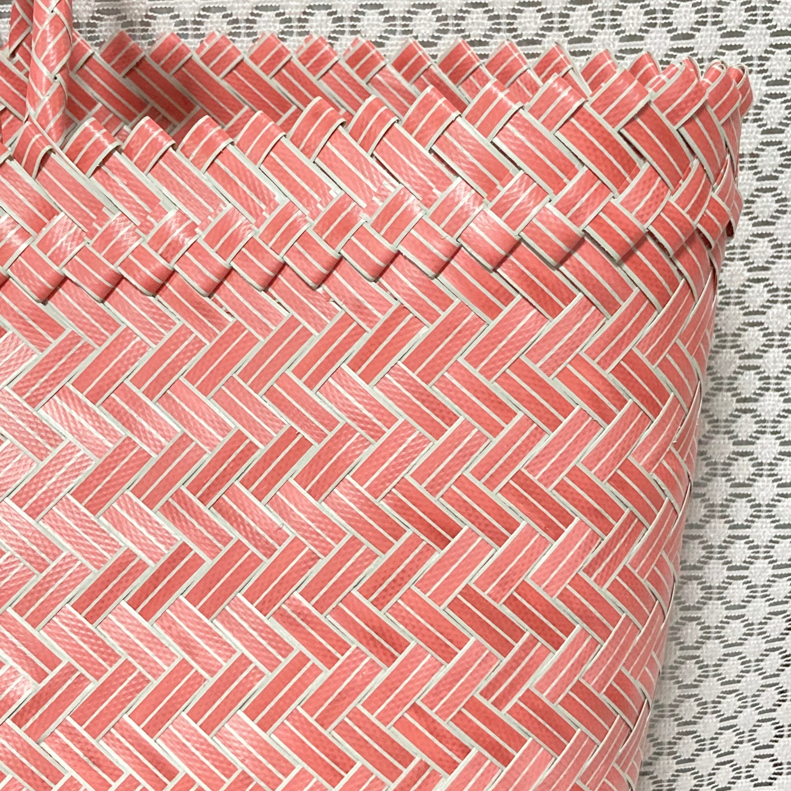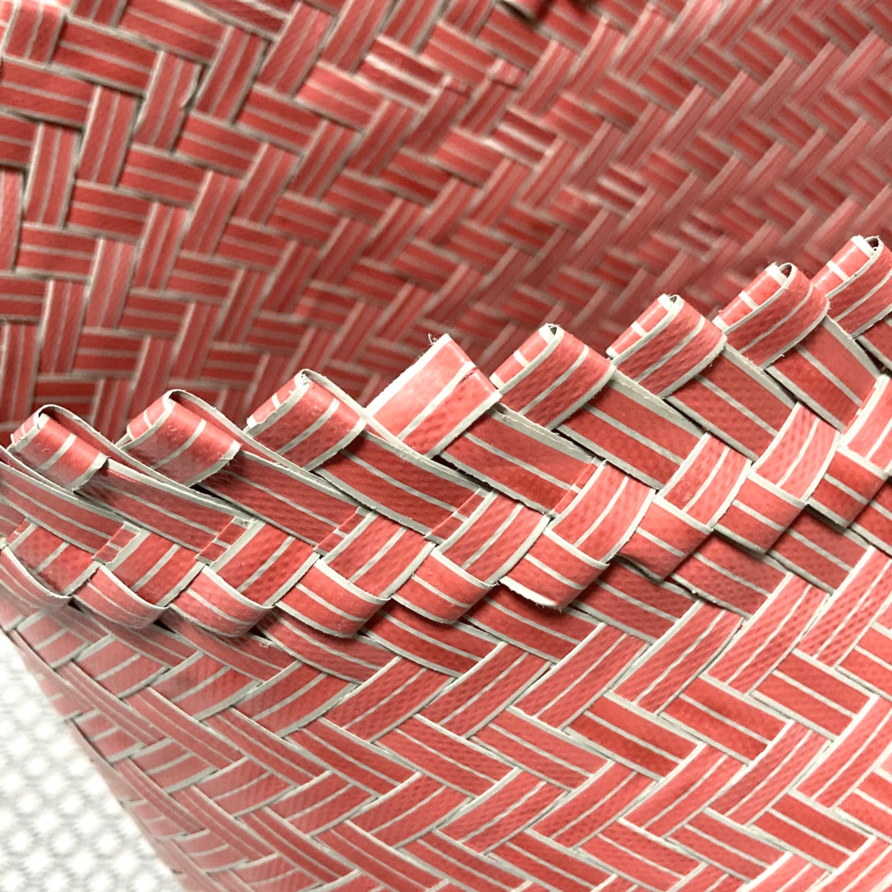 リサイクル素材のテープを手編みして作られた