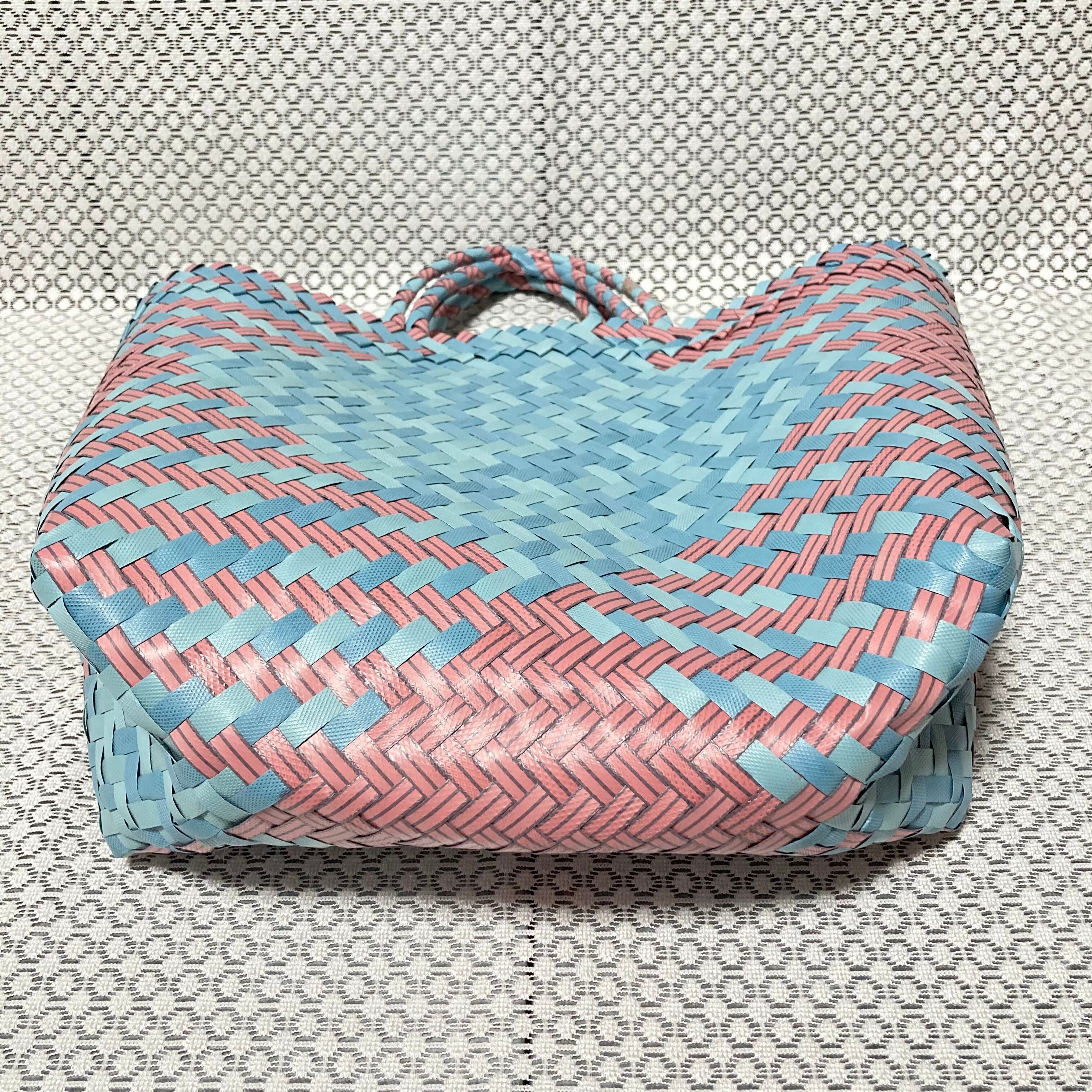 リサイクル素材のテープを手編みして作られた