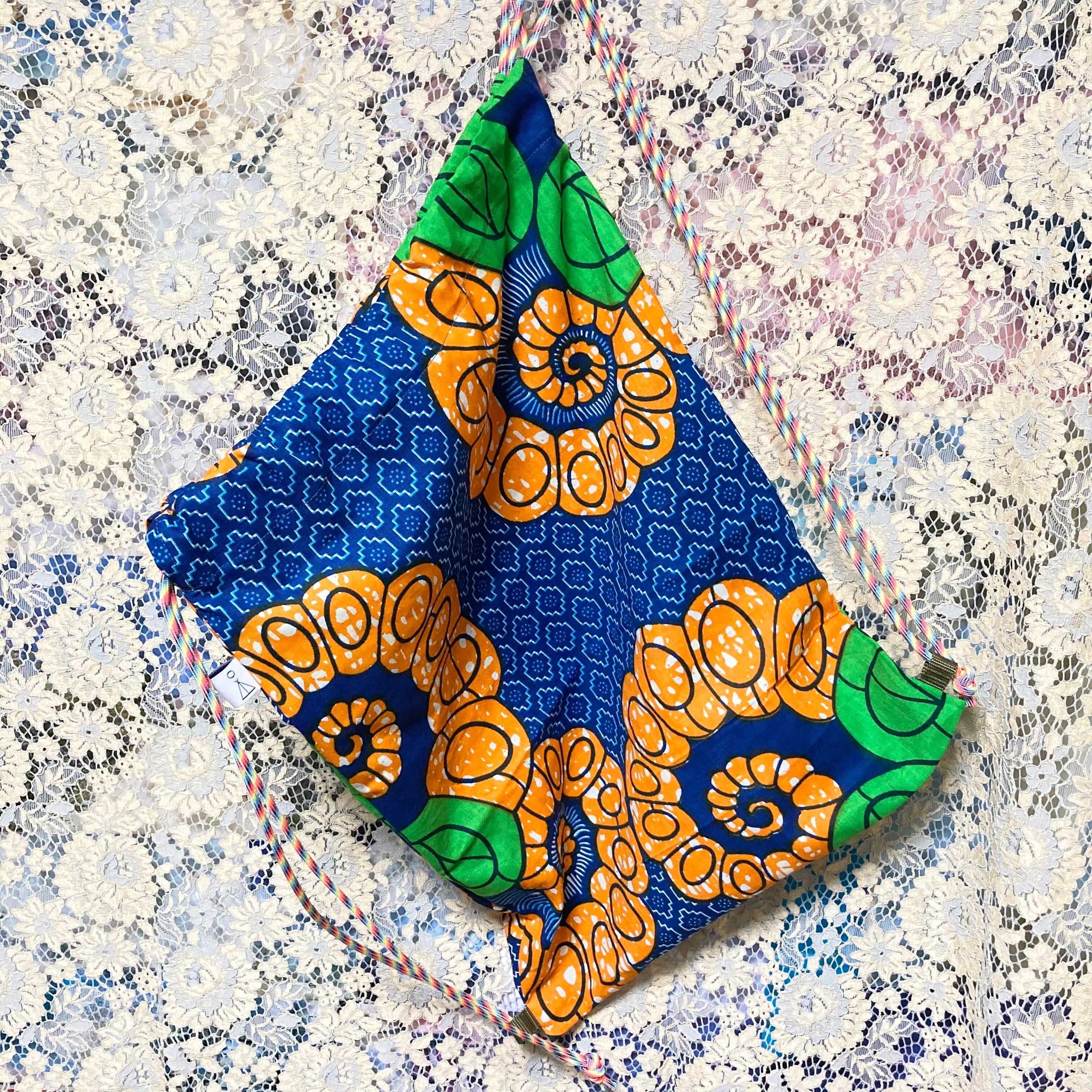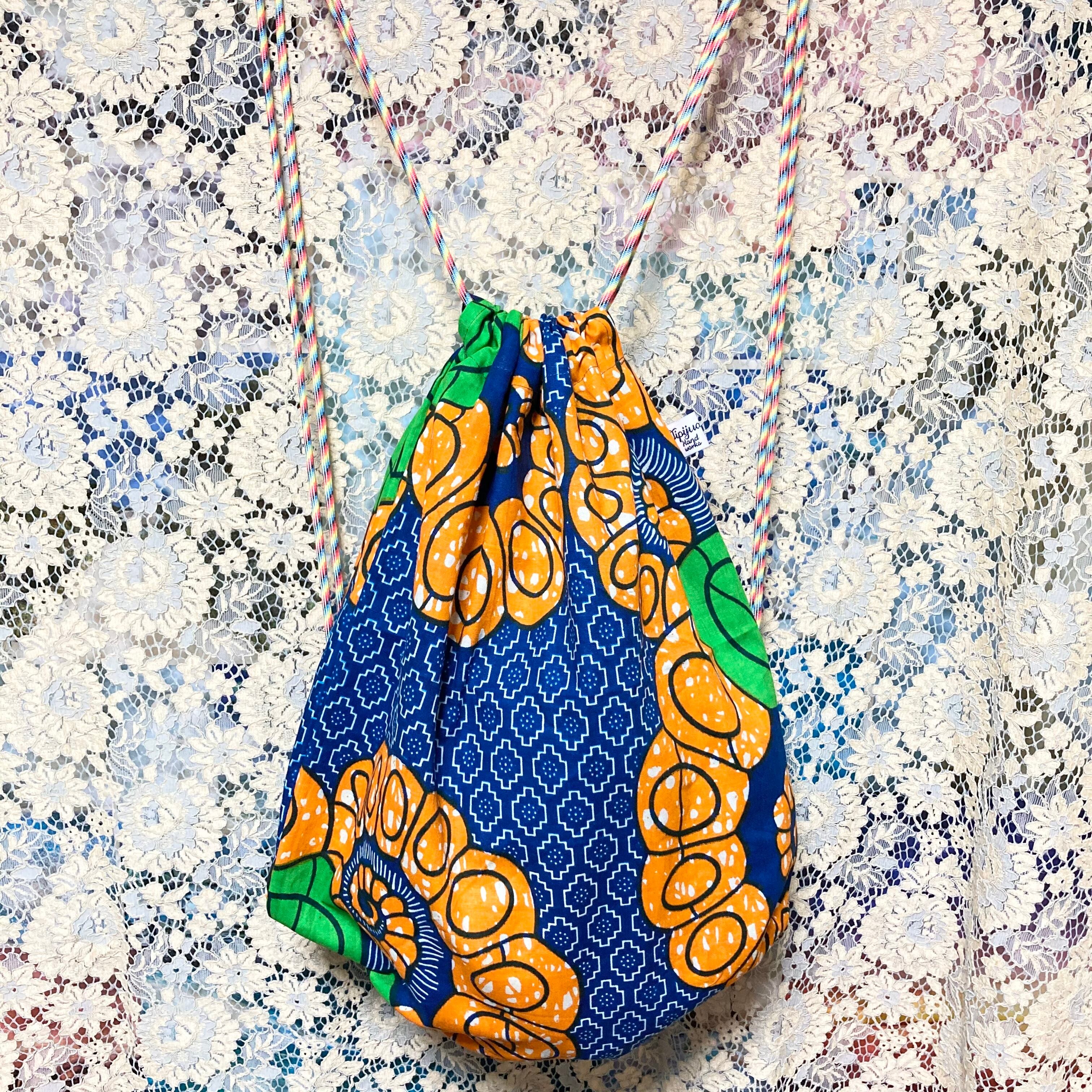 ひもは結び目で長さを調整できます。紐通しから外して巾着としてもお使いいただけます。旅行のサブバッグにも便利です。