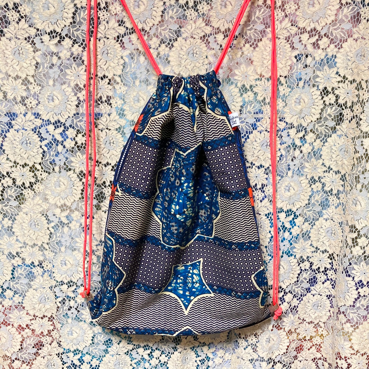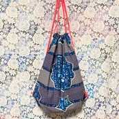 カラフルなアフリカンファブリックのナップサック。片面ずつ違う柄を合わせました。