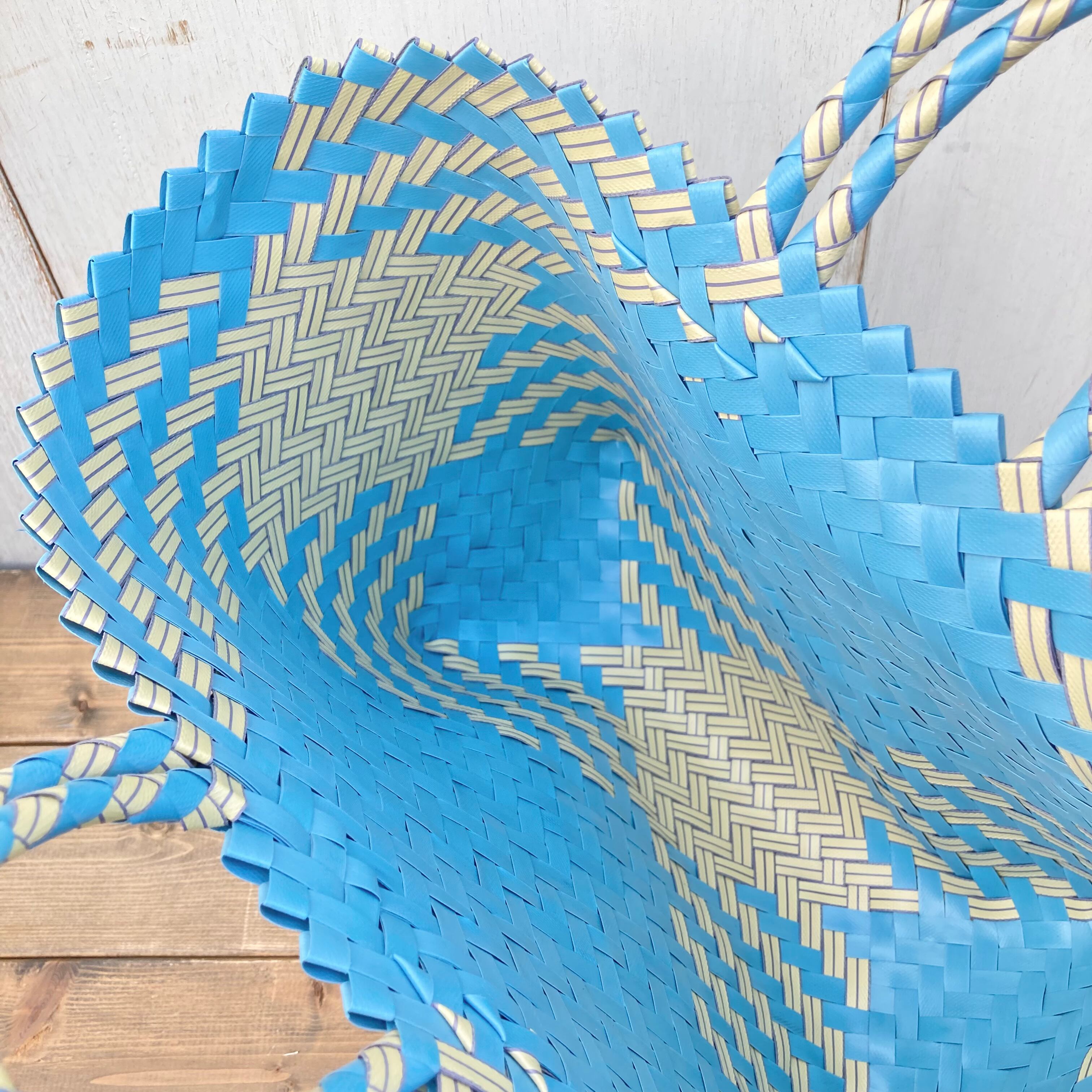 リサイクル素材のテープを手編みして作られた