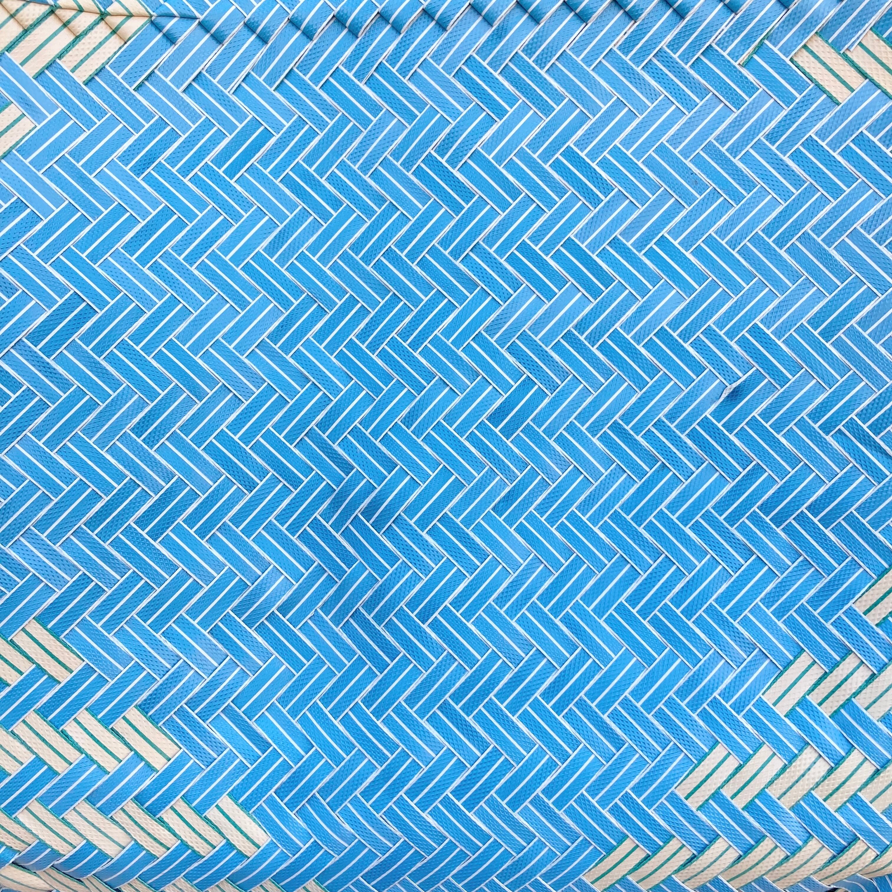 リサイクル素材のテープを手編みして作られた