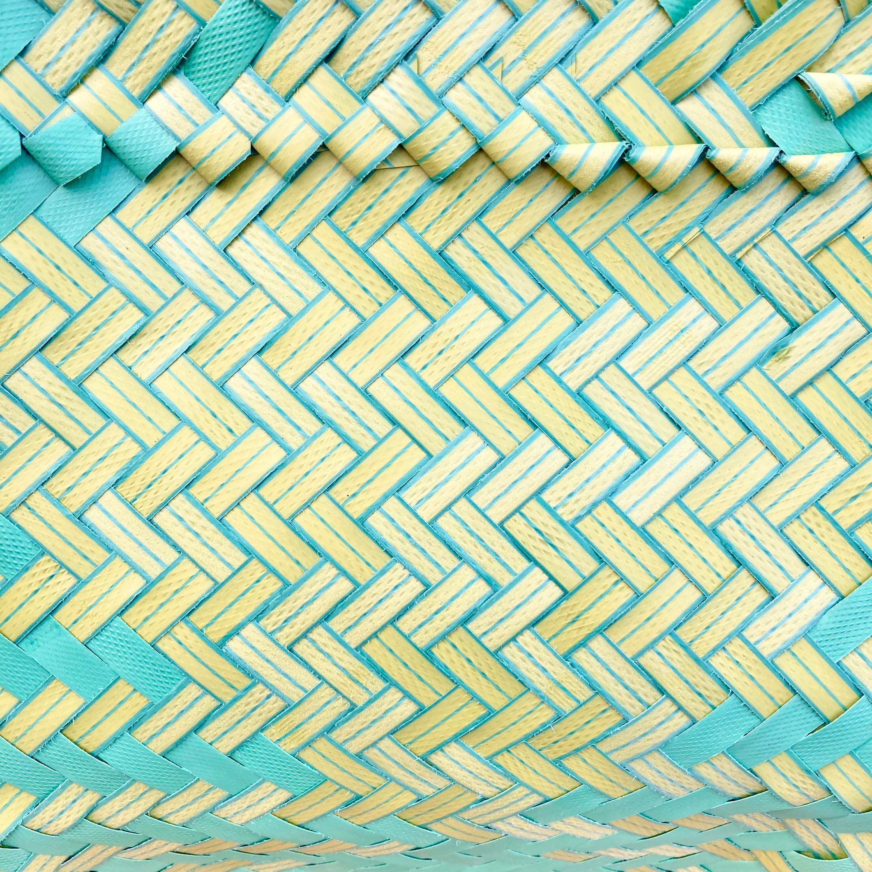 リサイクル素材のテープを手編みして作られた