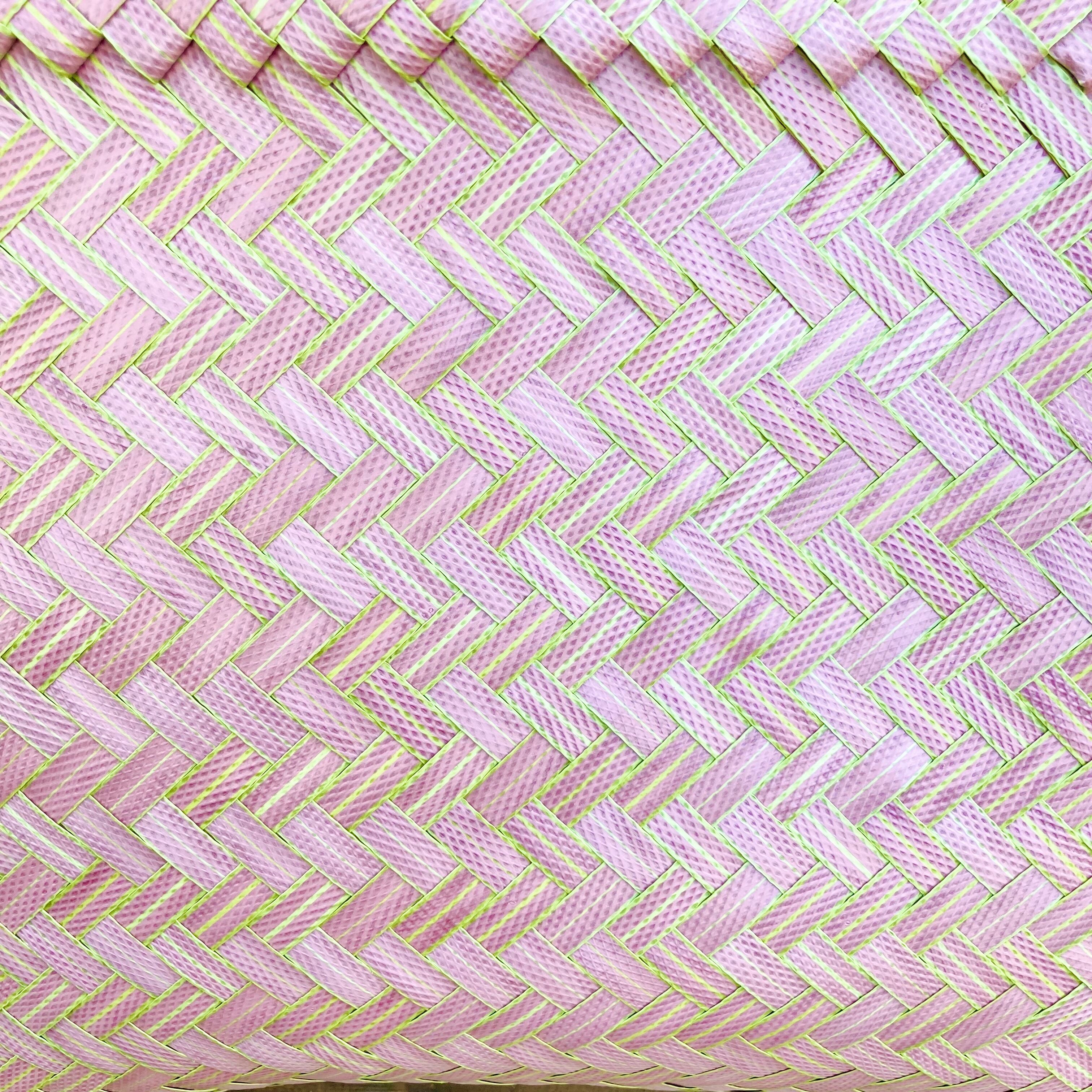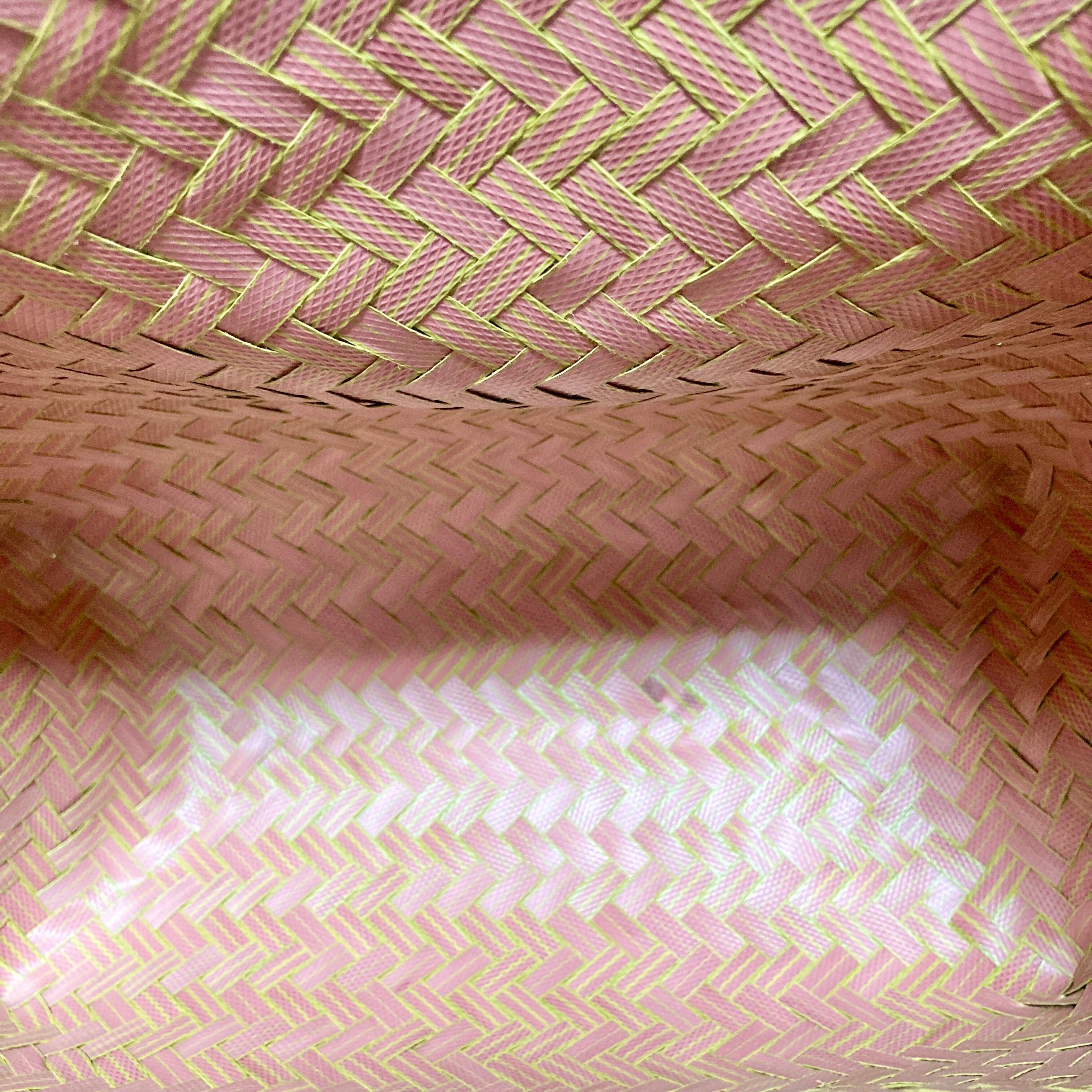 リサイクル素材のテープを手編みして作られた