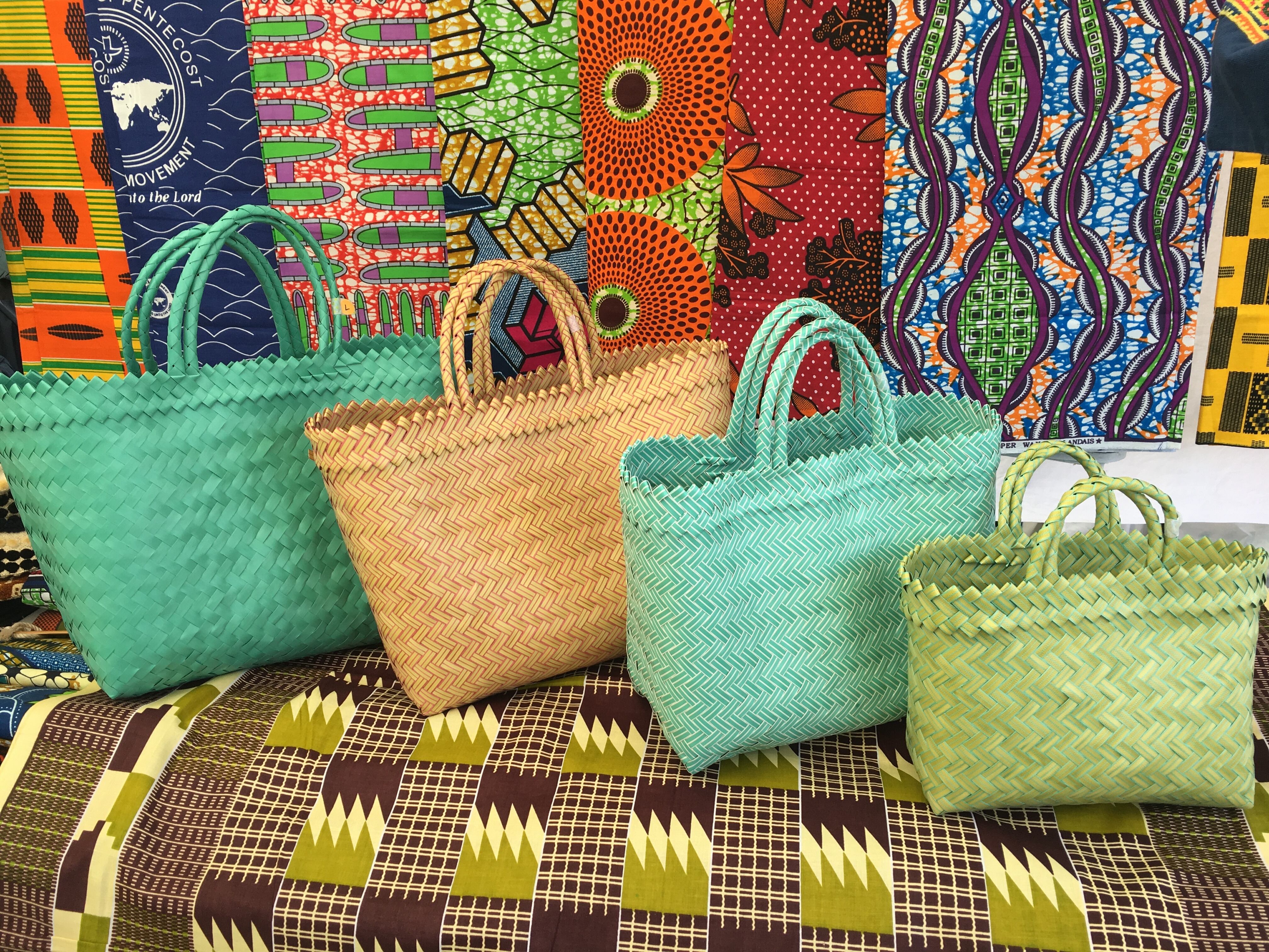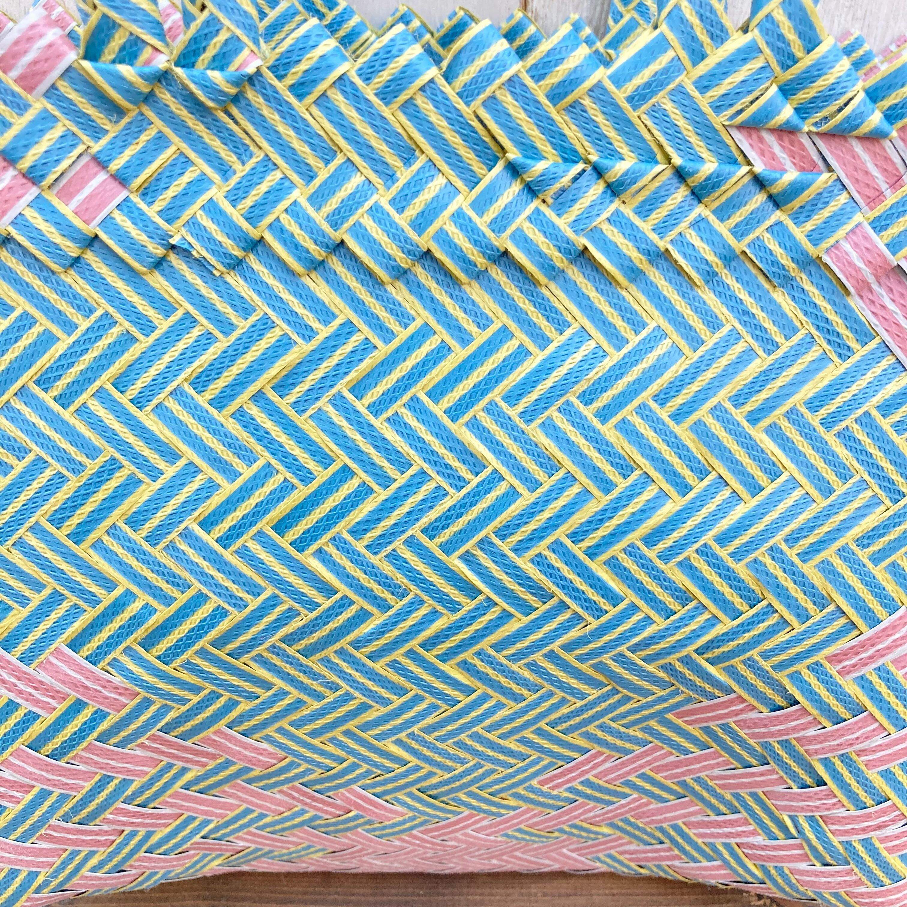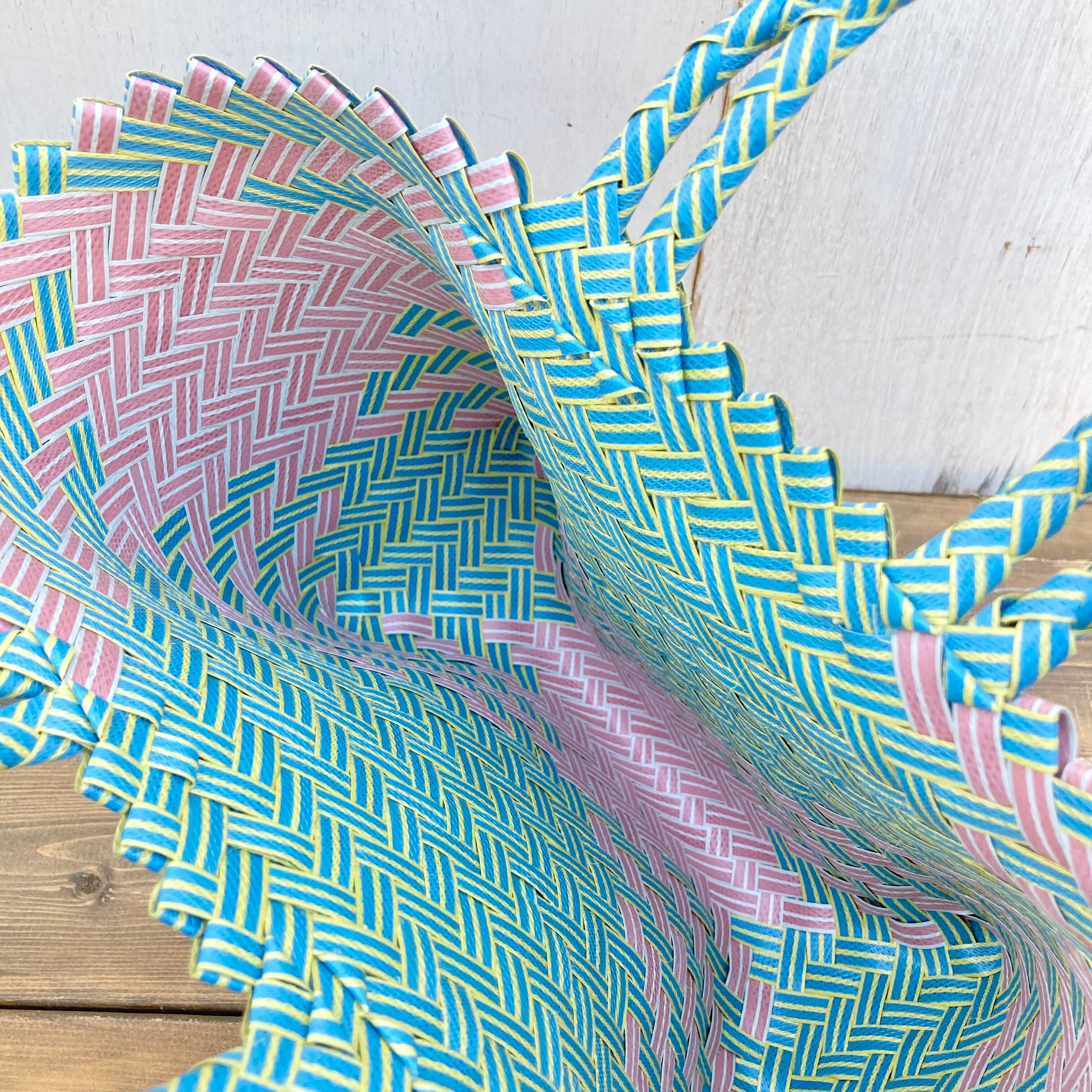 リサイクル素材のテープを手編みして作られた