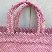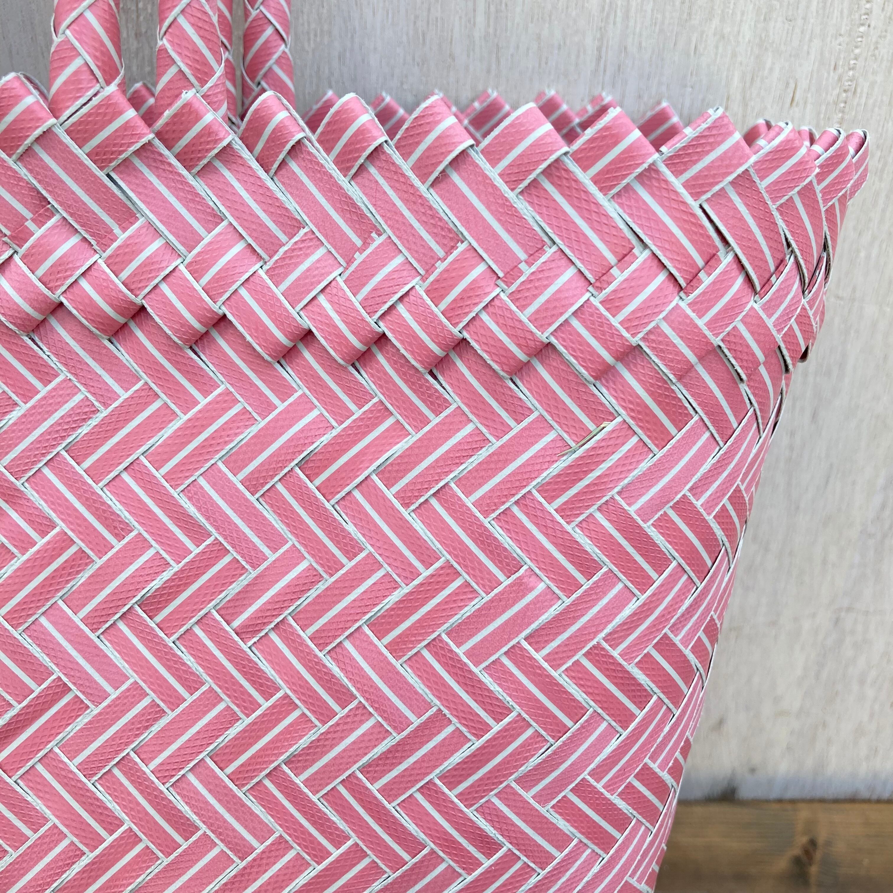リサイクル素材のテープを手編みして作られた