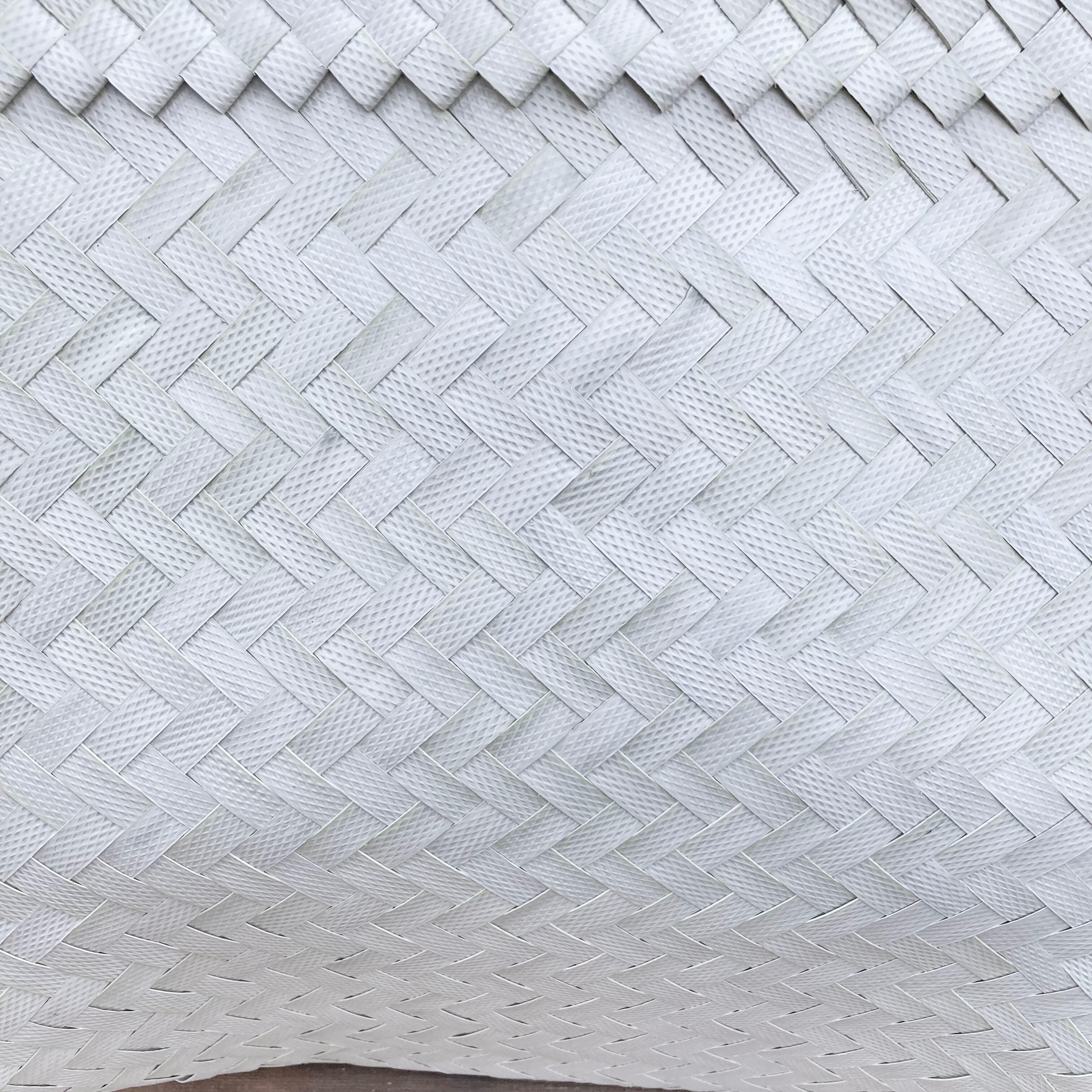 リサイクル素材のテープを手編みして作られた