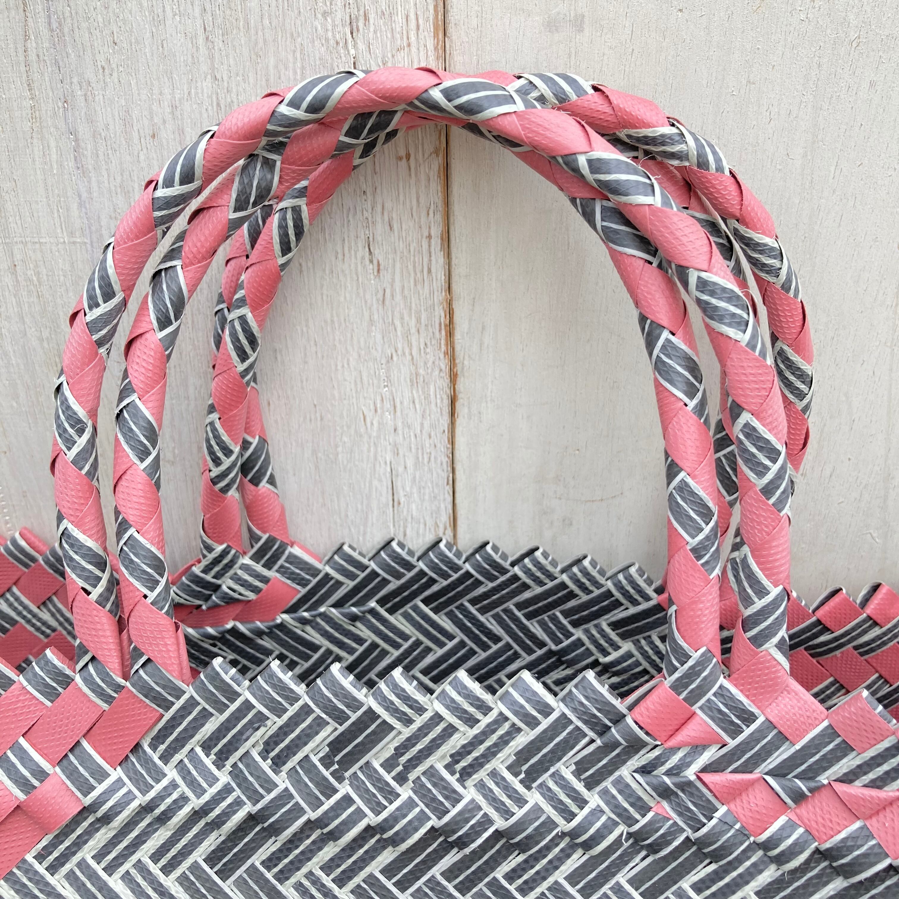 リサイクル素材のテープを手編みして作られた