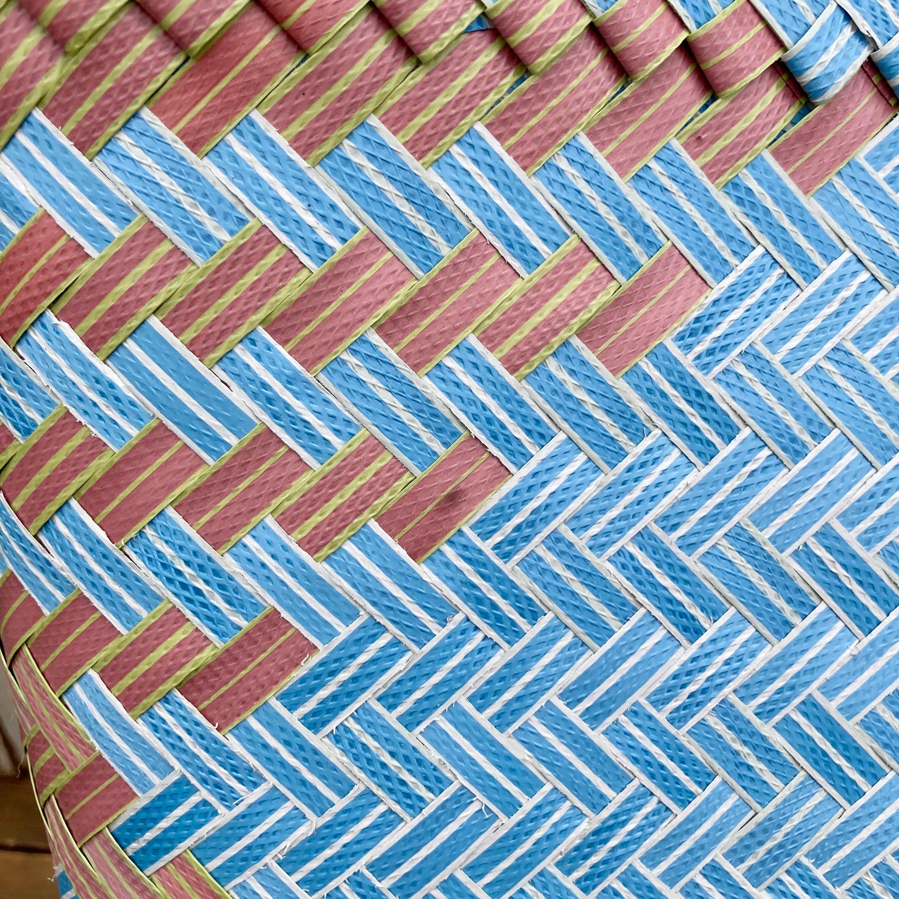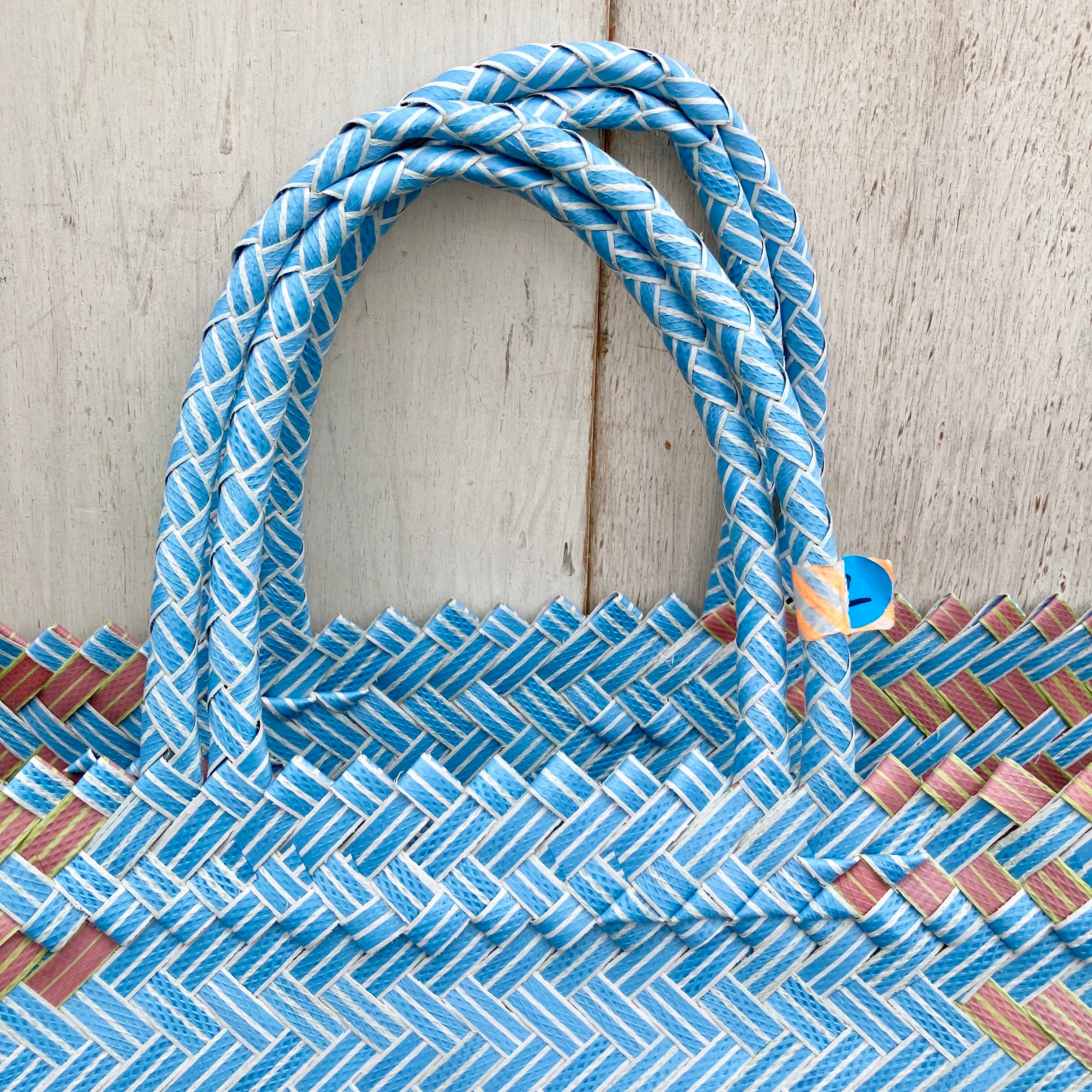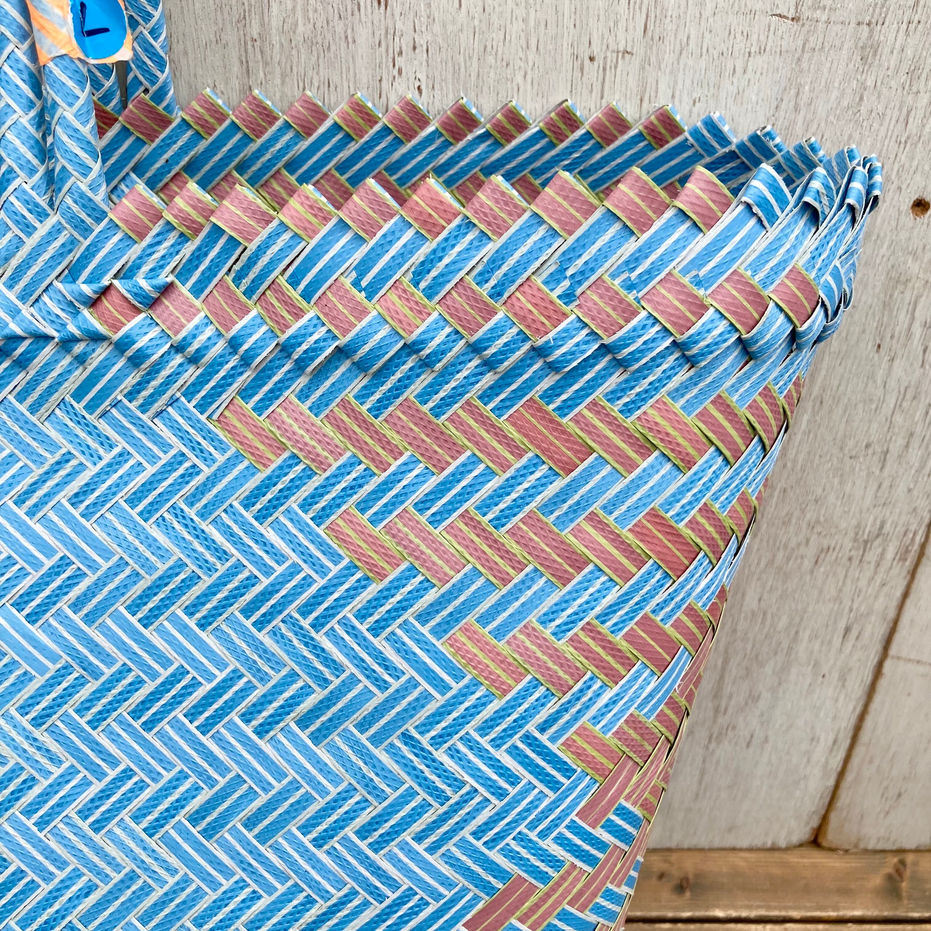 リサイクル素材のテープを手編みして作られた