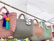リサイクル素材のテープを手編みして作られた